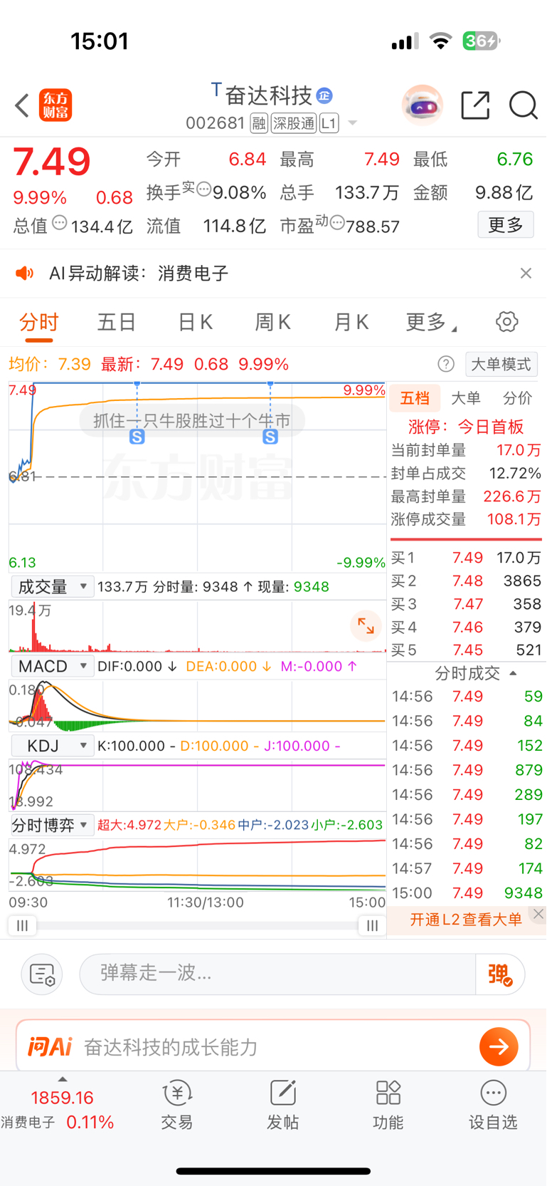 $奋达科技(SZ002681)$ 可以2周吃了12个点