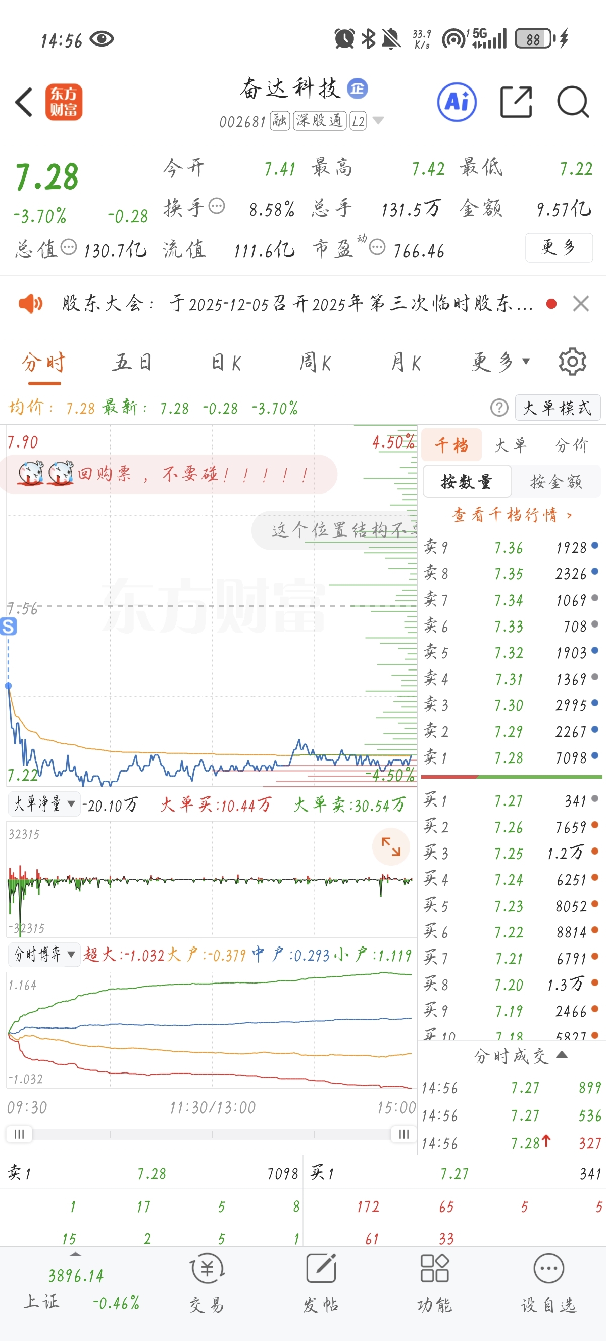 $奋达科技(SZ002681)$ 昨天买的,今天割肉也要走,就知道你是烂泥扶不上墙