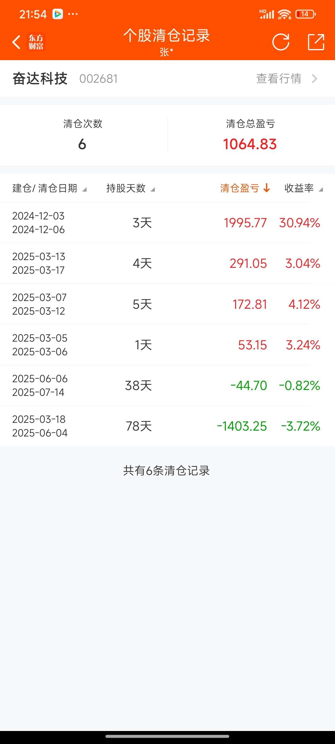 $奋达科技(SZ002681)$ 开始炒股听别人的,现在就听自个的。