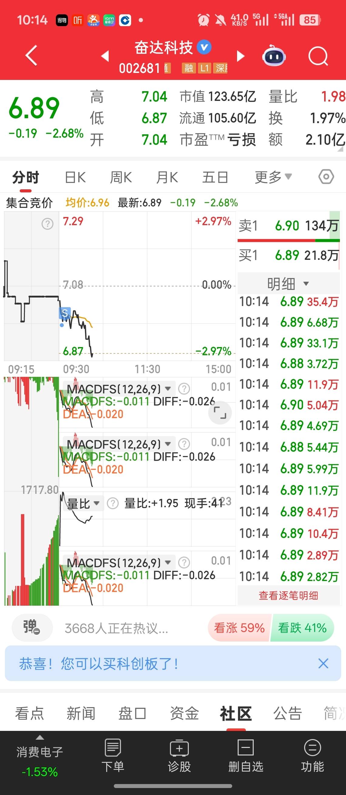 $奋达科技(SZ002681)$ 还以为卖飞了