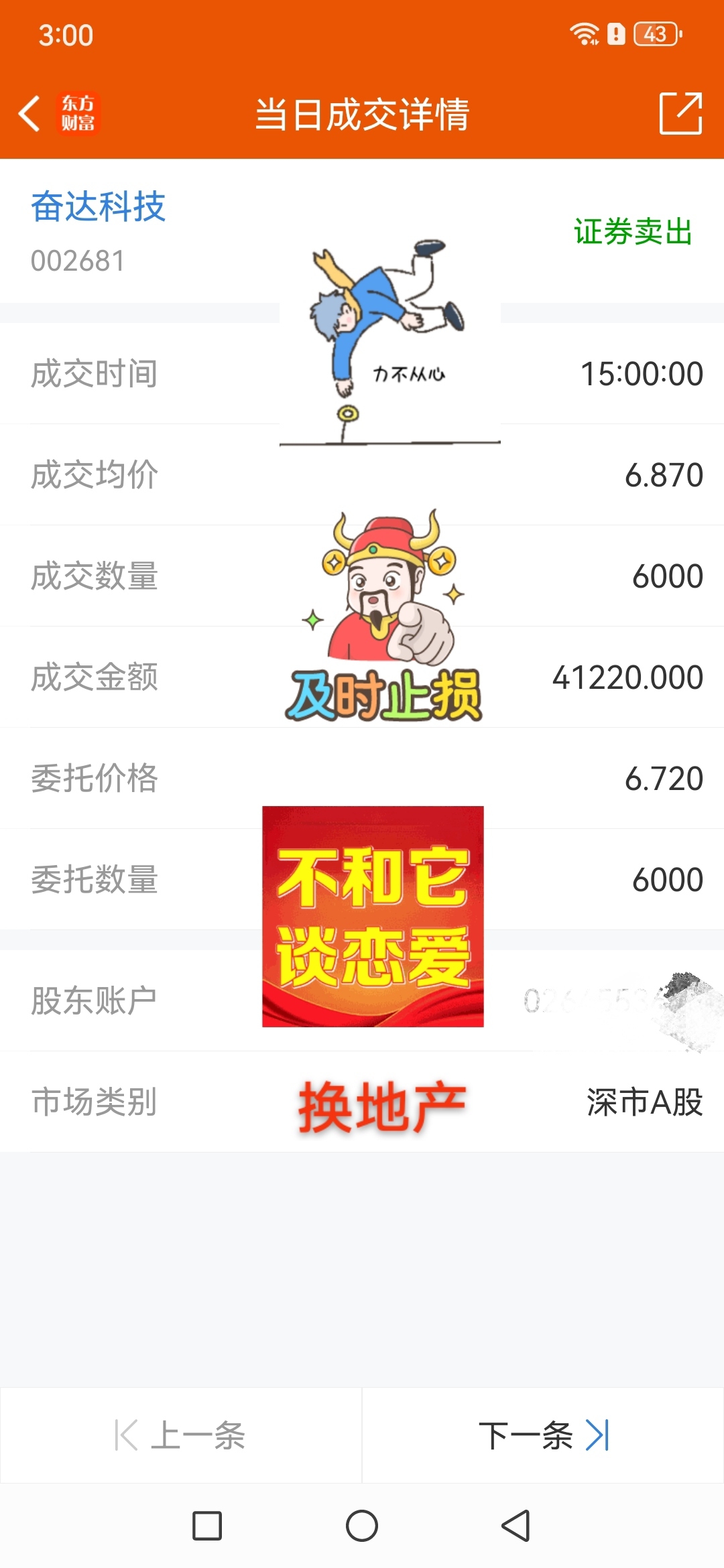 $奋达科技(SZ002681)$ 尾盘跌停价清仓!!!