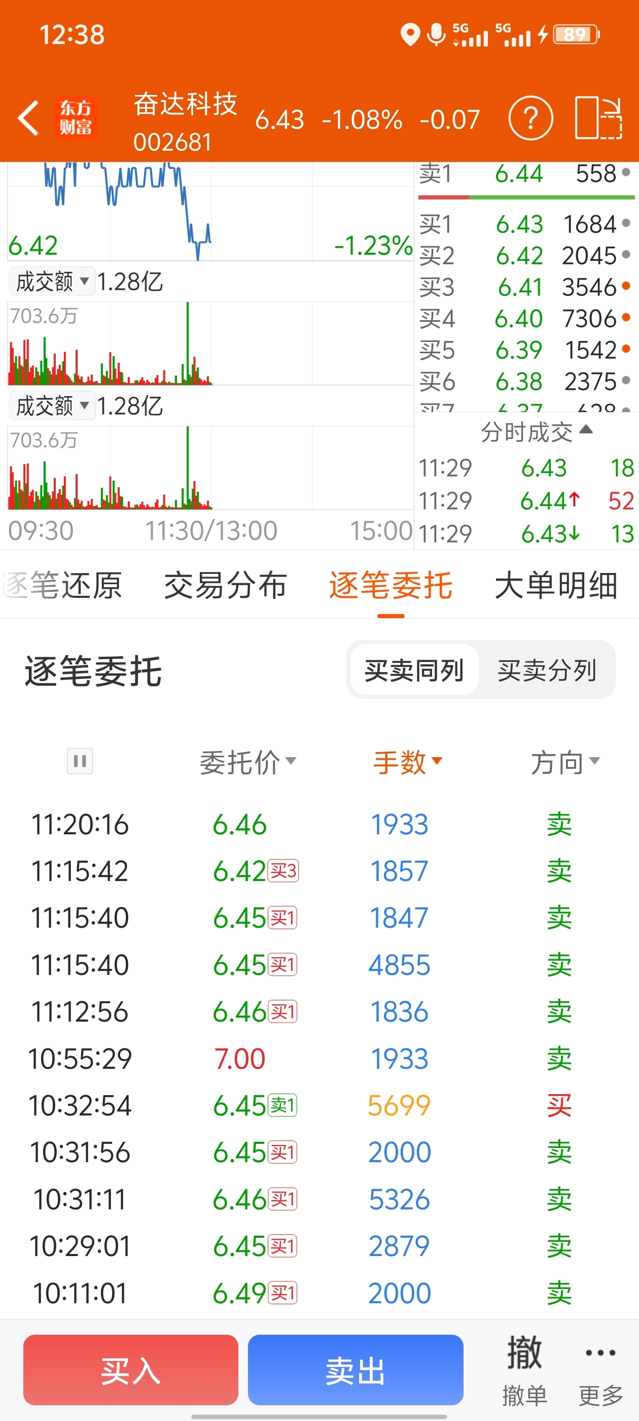 $奋达科技(SZ002681)$ 垃圾苟奋,大单苟一直在砸