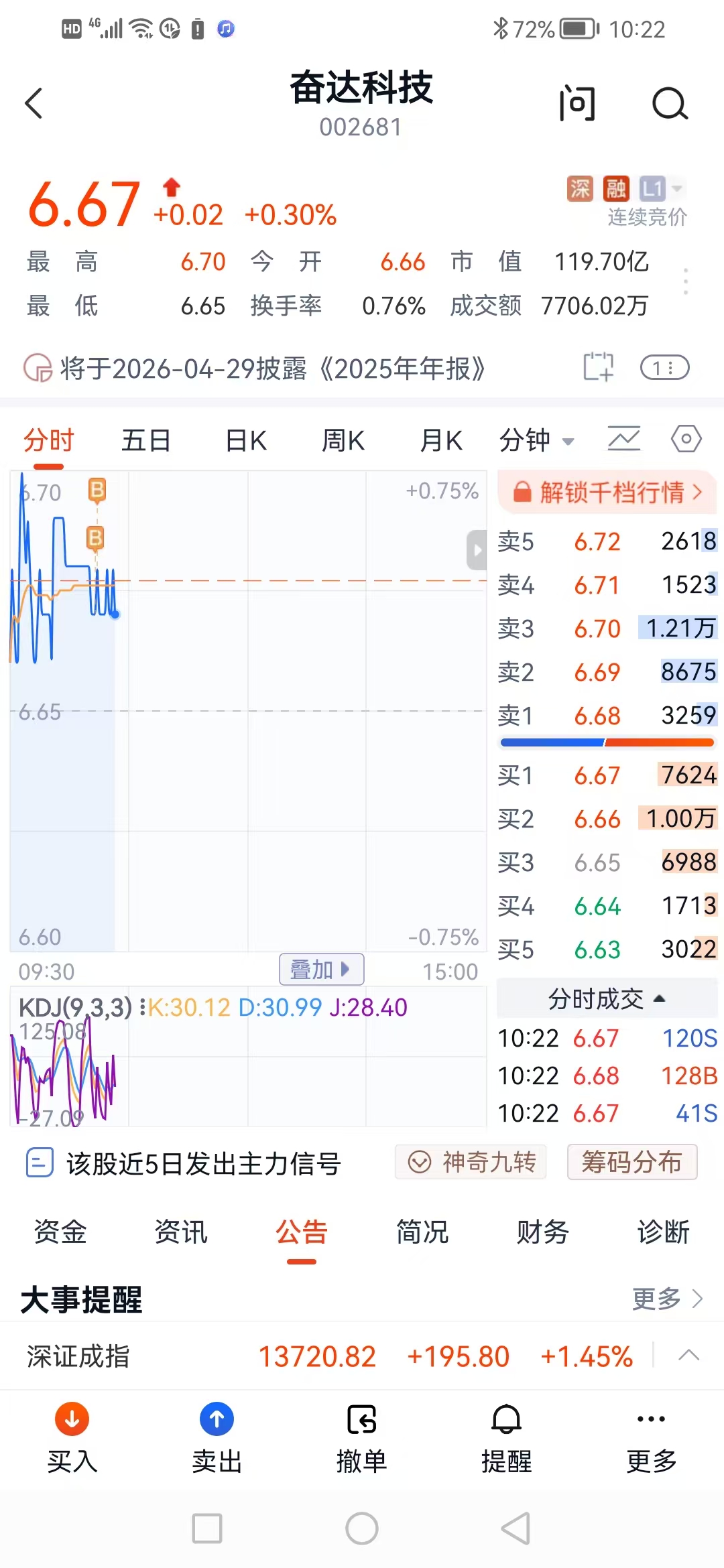 6.65-6.69成仓再入1000手奋达科技。等待涨停。