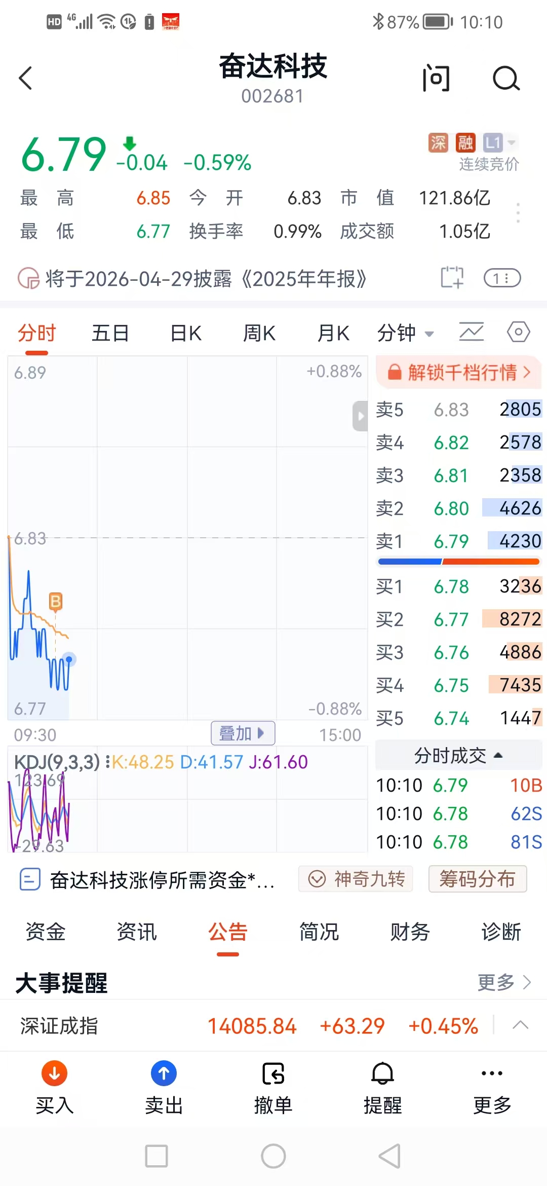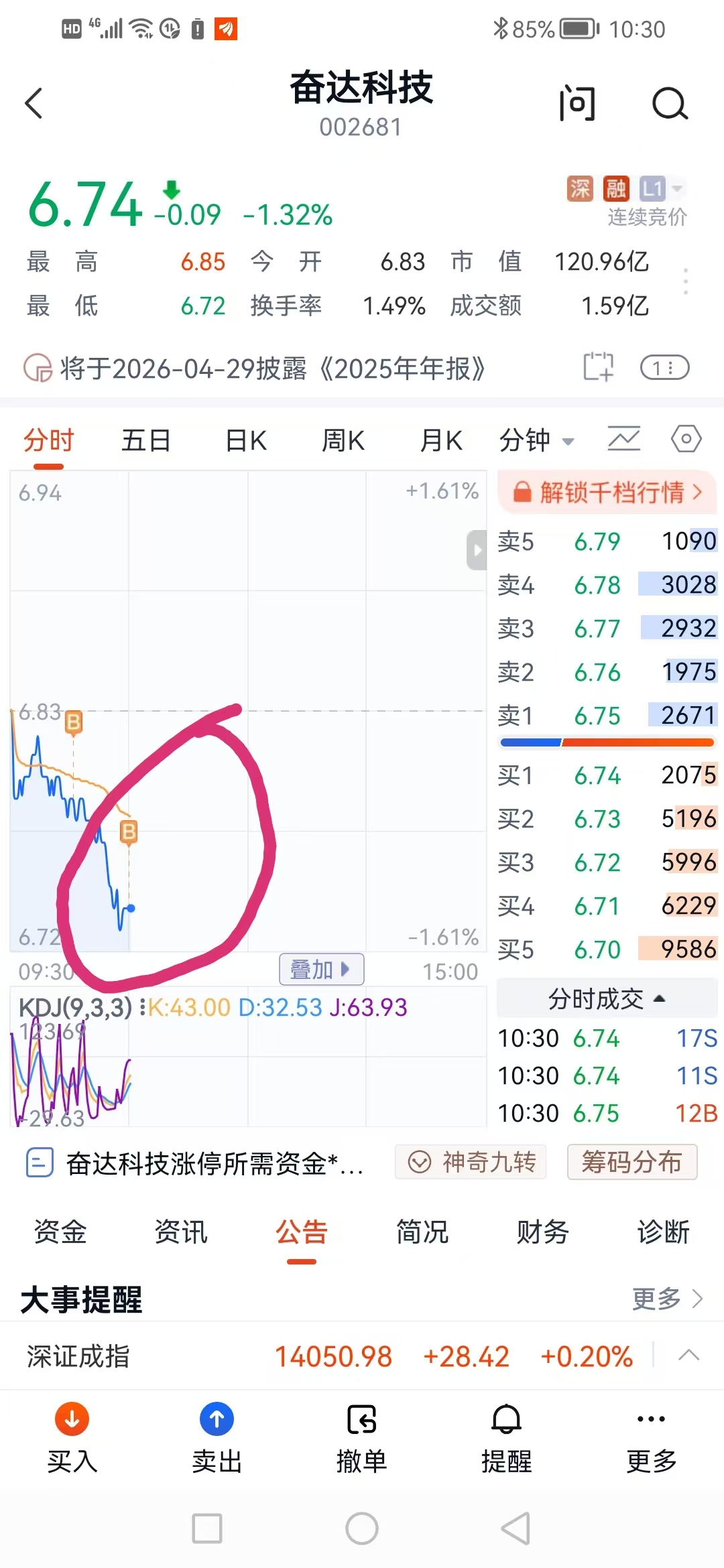 下午三大指数下挫,但不要怕,拉升前的下蹲而已。坚定持有!何况奋是低位股,没有多少下跌空间。