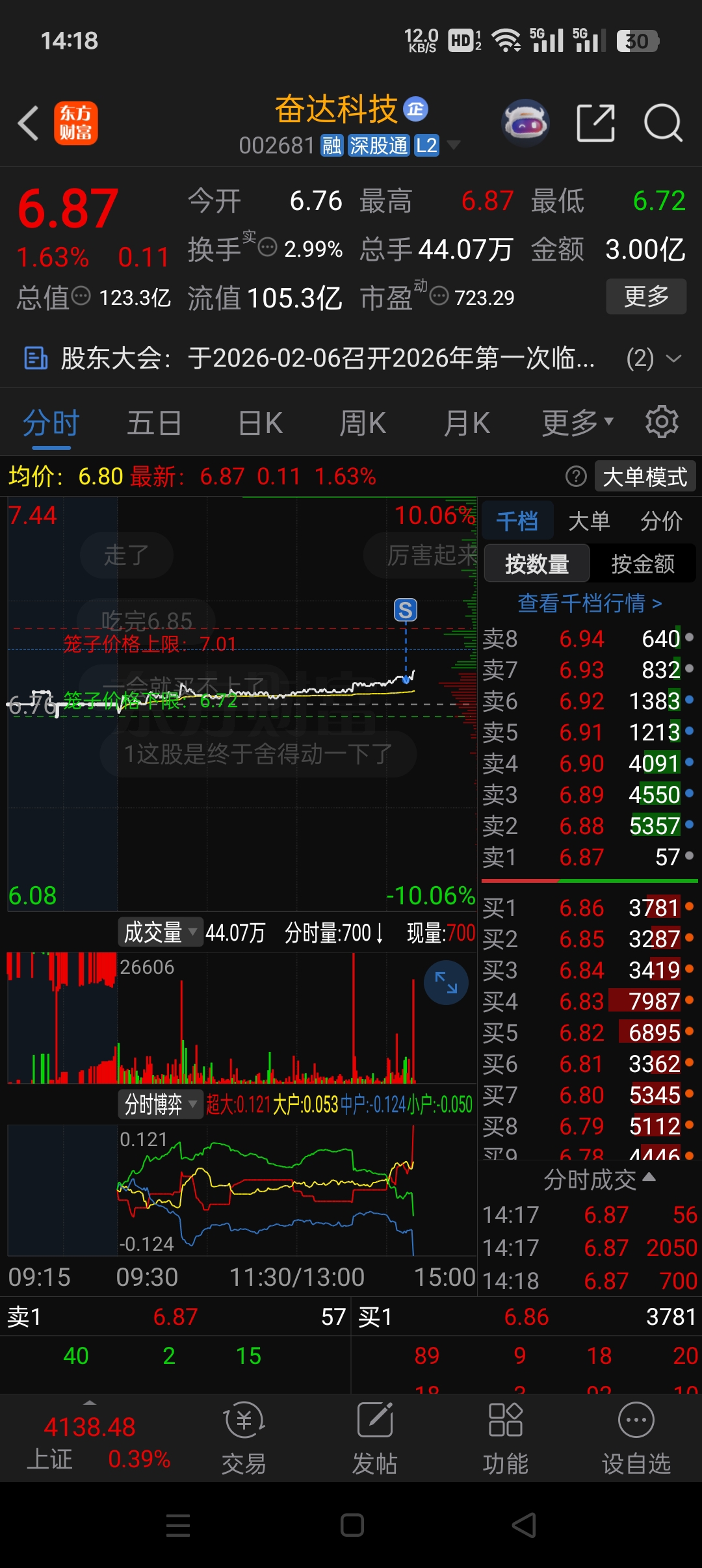 $奋达科技(SZ002681)$ 熬了一个月被洗走了