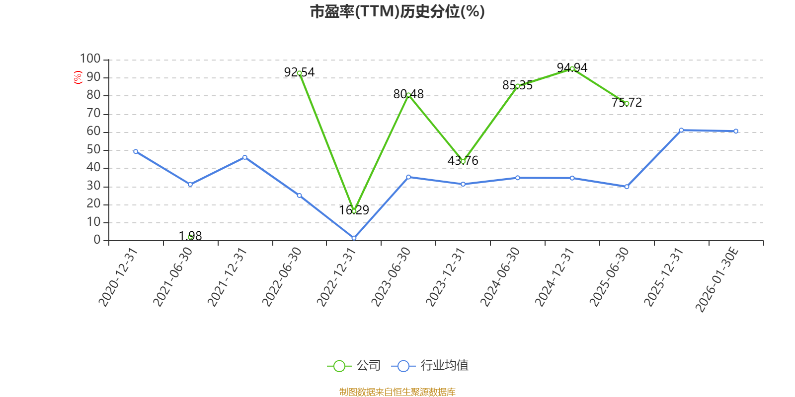 市盈率、市净率为负时,不显示当期分位数,会导致折线图中断。
