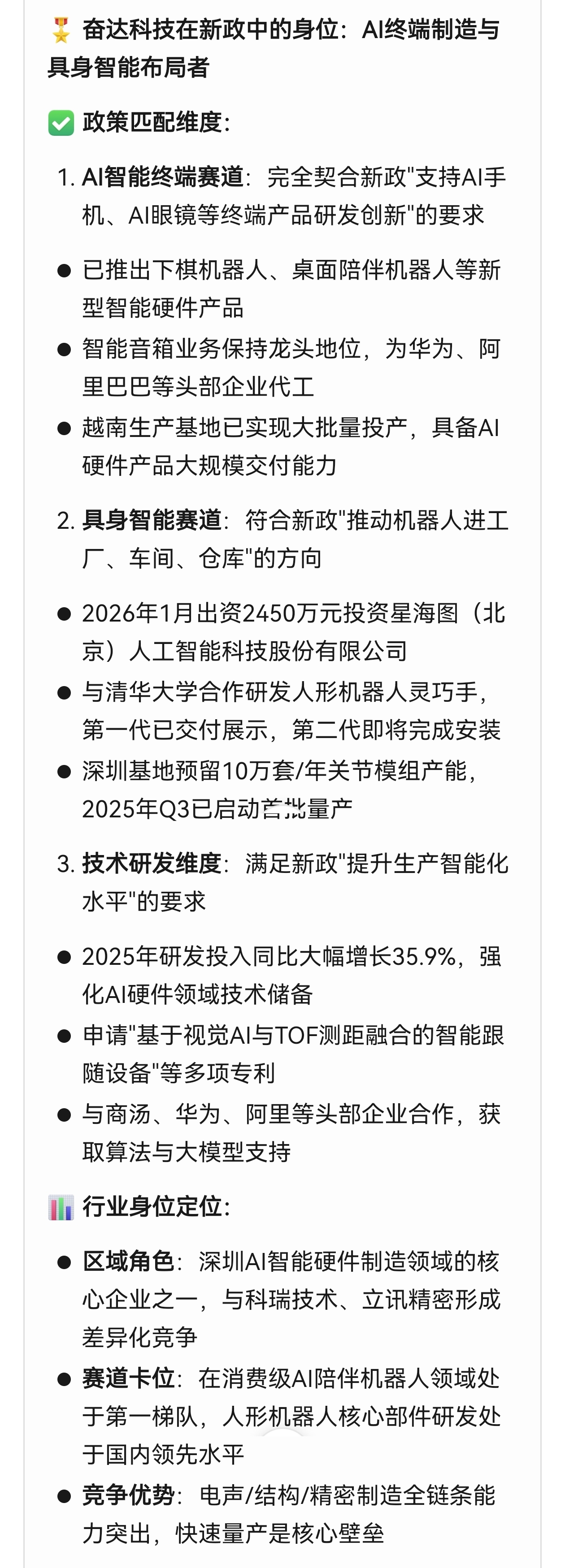 $奋达科技(SZ002681)$ 深圳《“人工智能+”先进制造业行动计划(2026—2027年)》