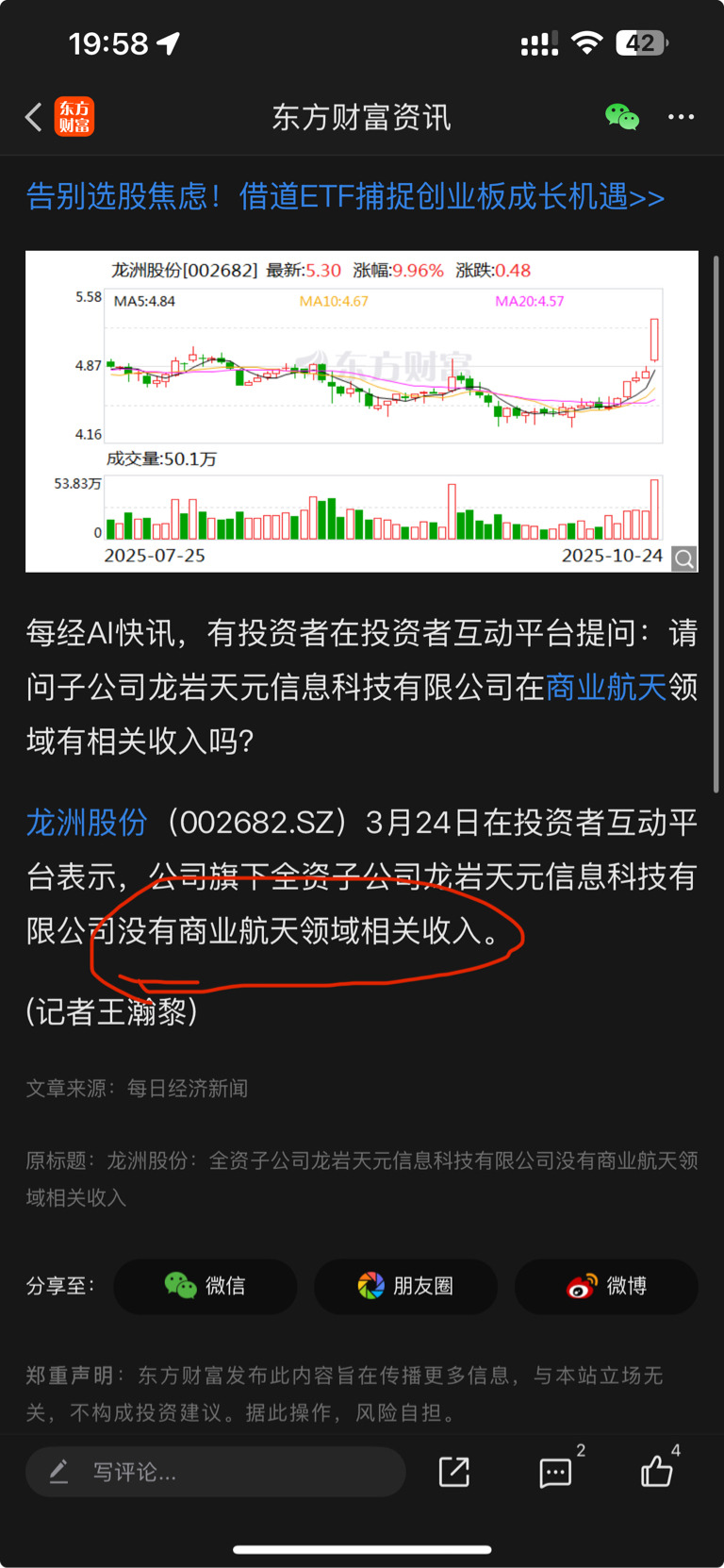 $龙洲股份(SZ002682)$ 没有商业航天
