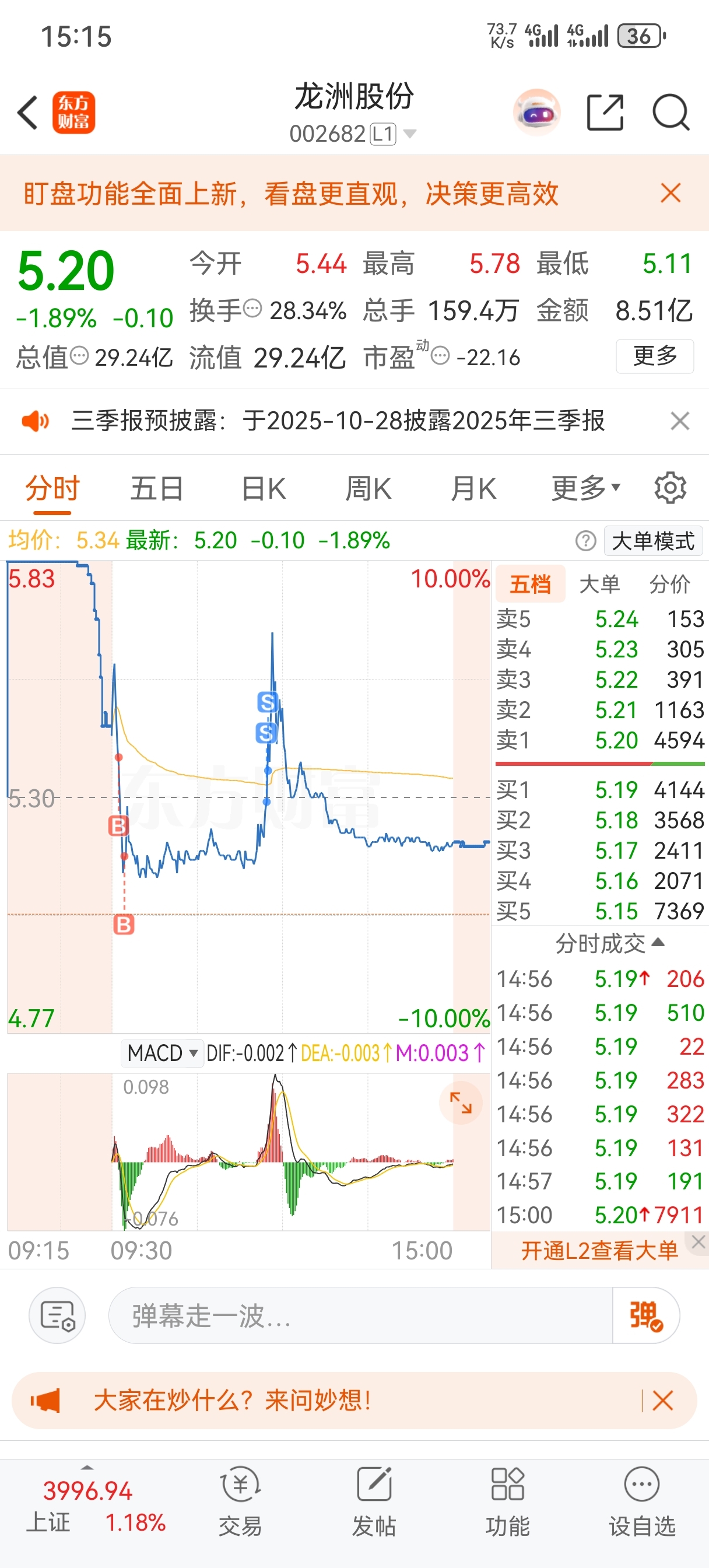 $龙洲股份(SZ002682)$ 不是我没有,悔之晚矣,没卖在高点,又是看别人赚钱的一天