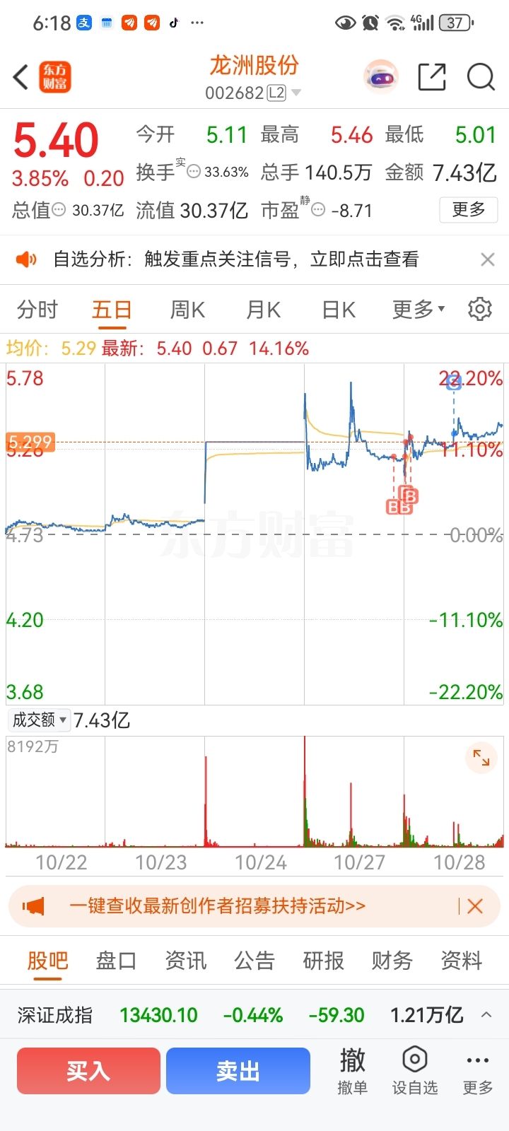 $龙洲股份(SZ002682)$ 进来两天了。我继续持股。