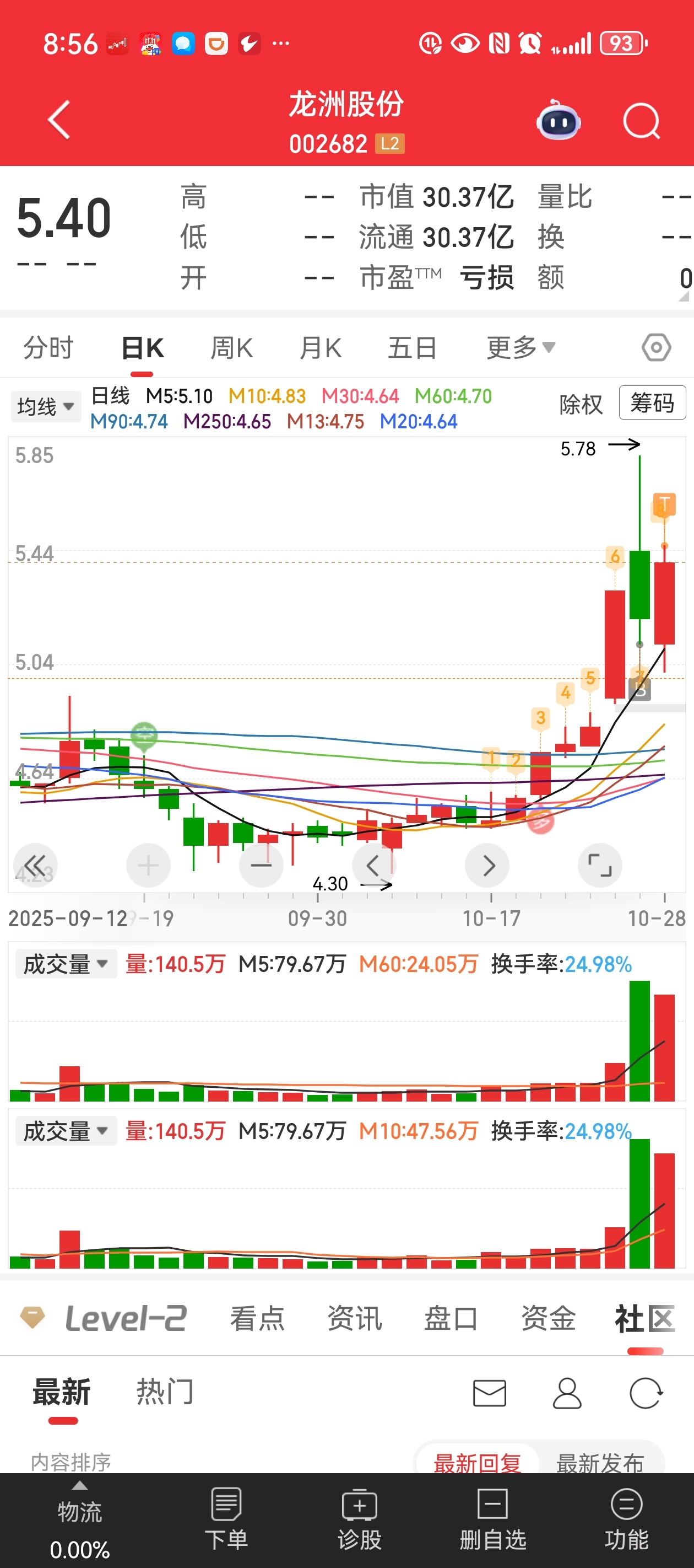 $龙洲股份(SZ002682)$ 有本事跌到成本线,一个字锁