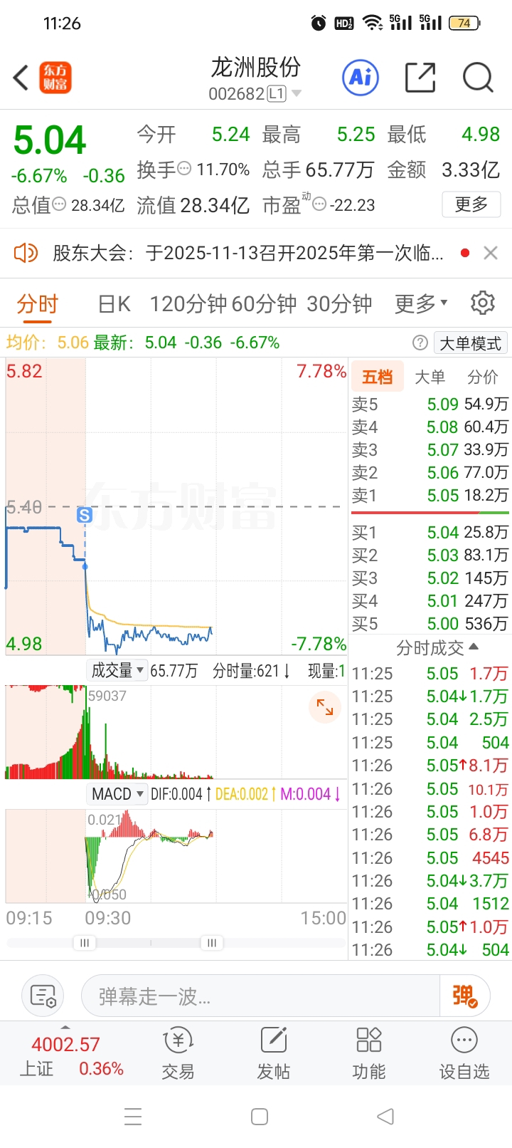 $龙洲股份(SZ002682)$ 上午最成功的操作。