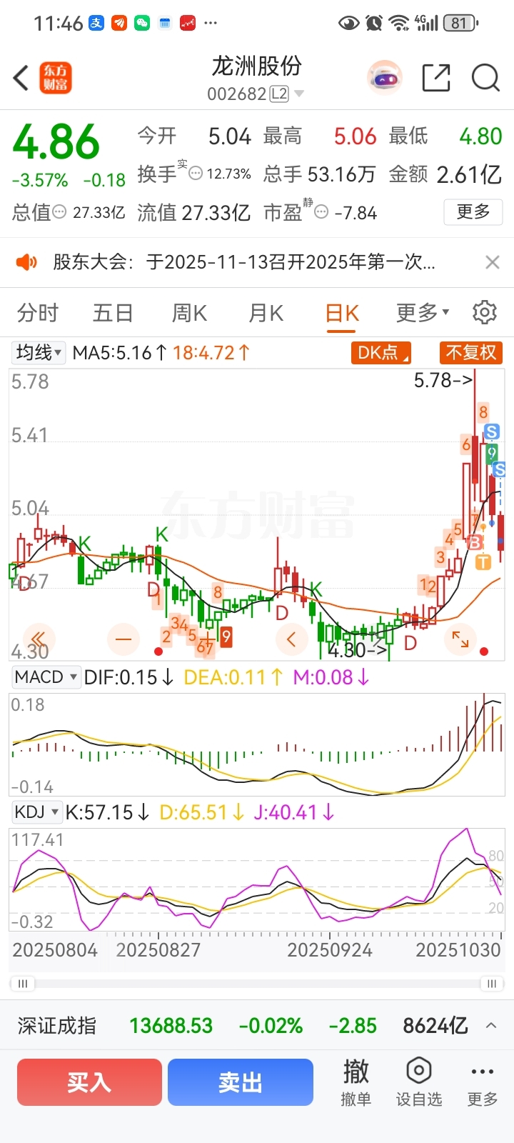 $龙洲股份(SZ002682)$ 昨天破均线减半。今天破支撑减仓。割肉也要走。