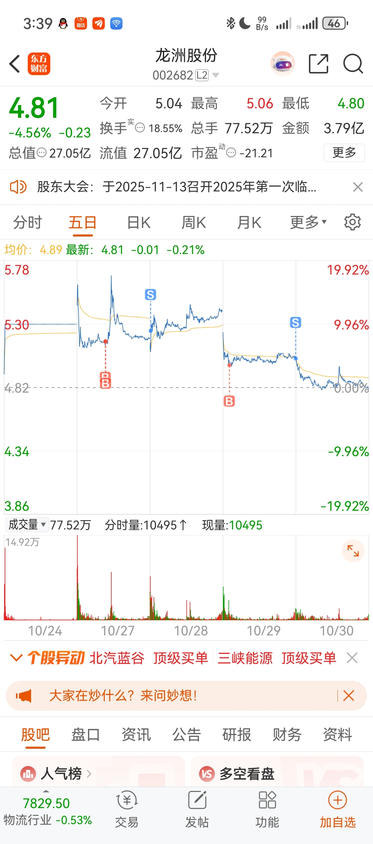 $龙洲股份(SZ002682)$ 竞价不及预期开盘清仓走人