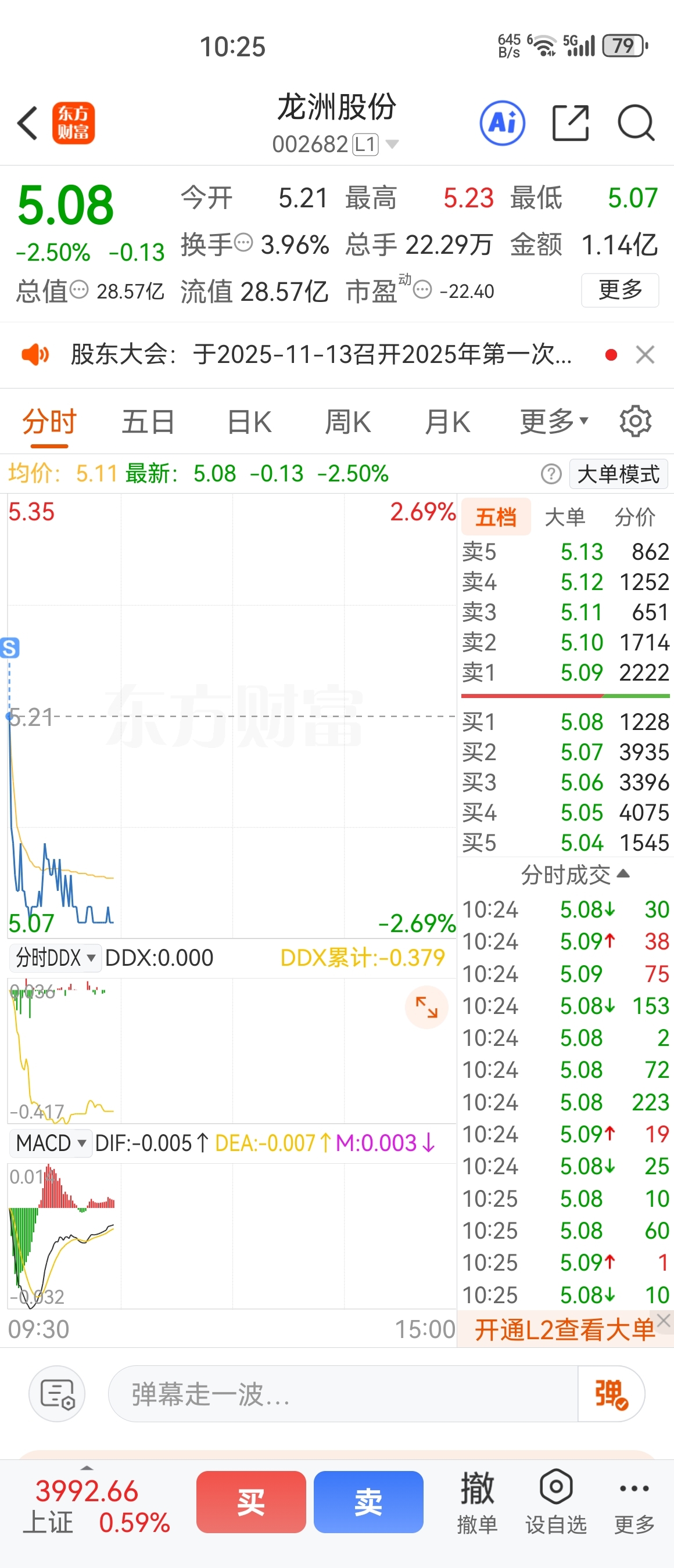 $龙洲股份(SZ002682)$ 今天已跑,可以跌了
