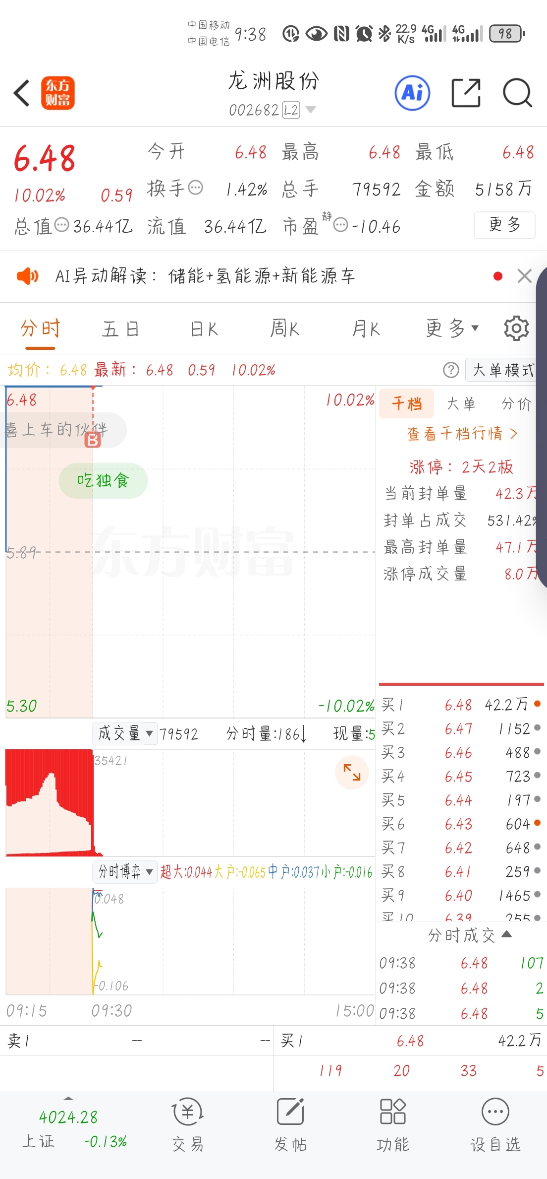 $龙洲股份(SZ002682)$ 一个恐怖的试事情,买了5手试错,真的买进去了