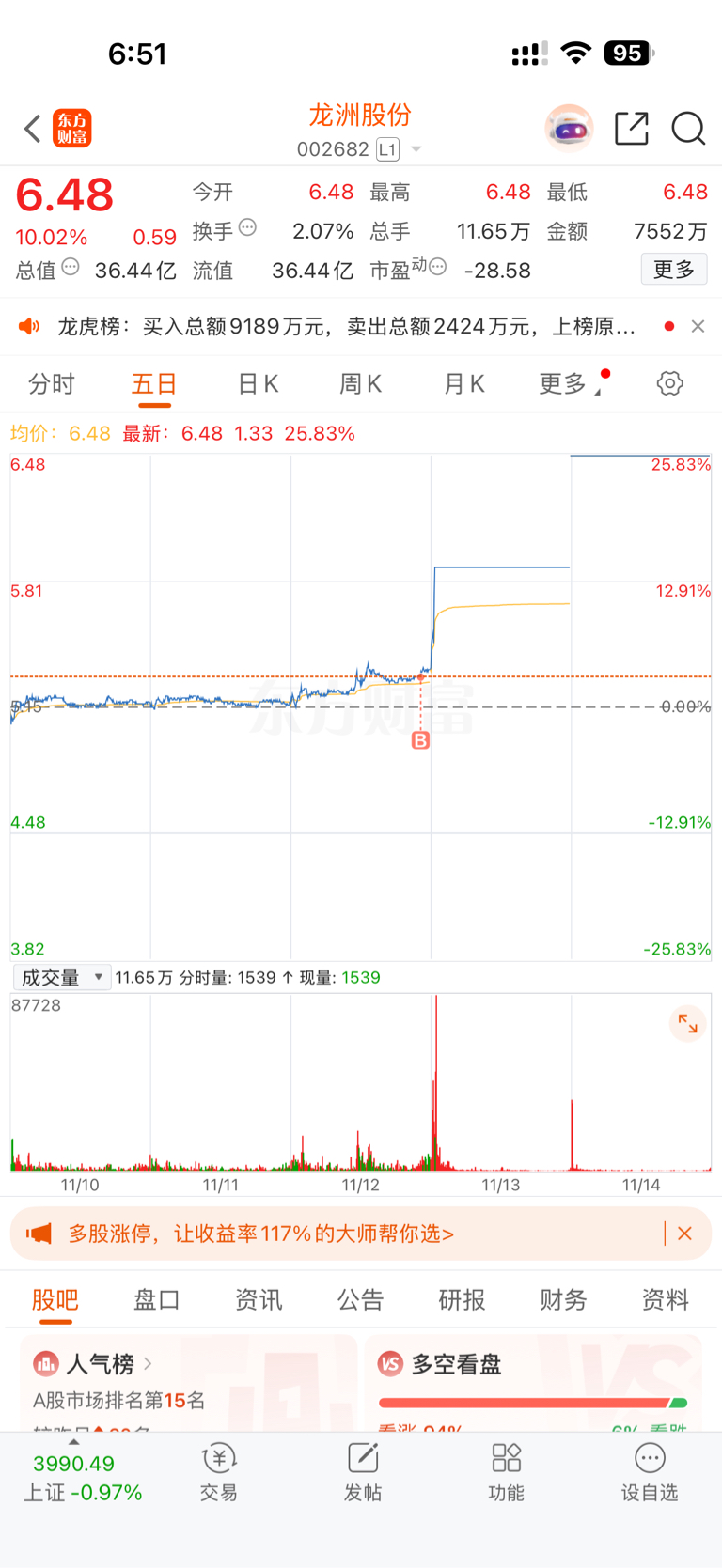 $龙洲股份(SZ002682)$ 周一是走还是继续格局