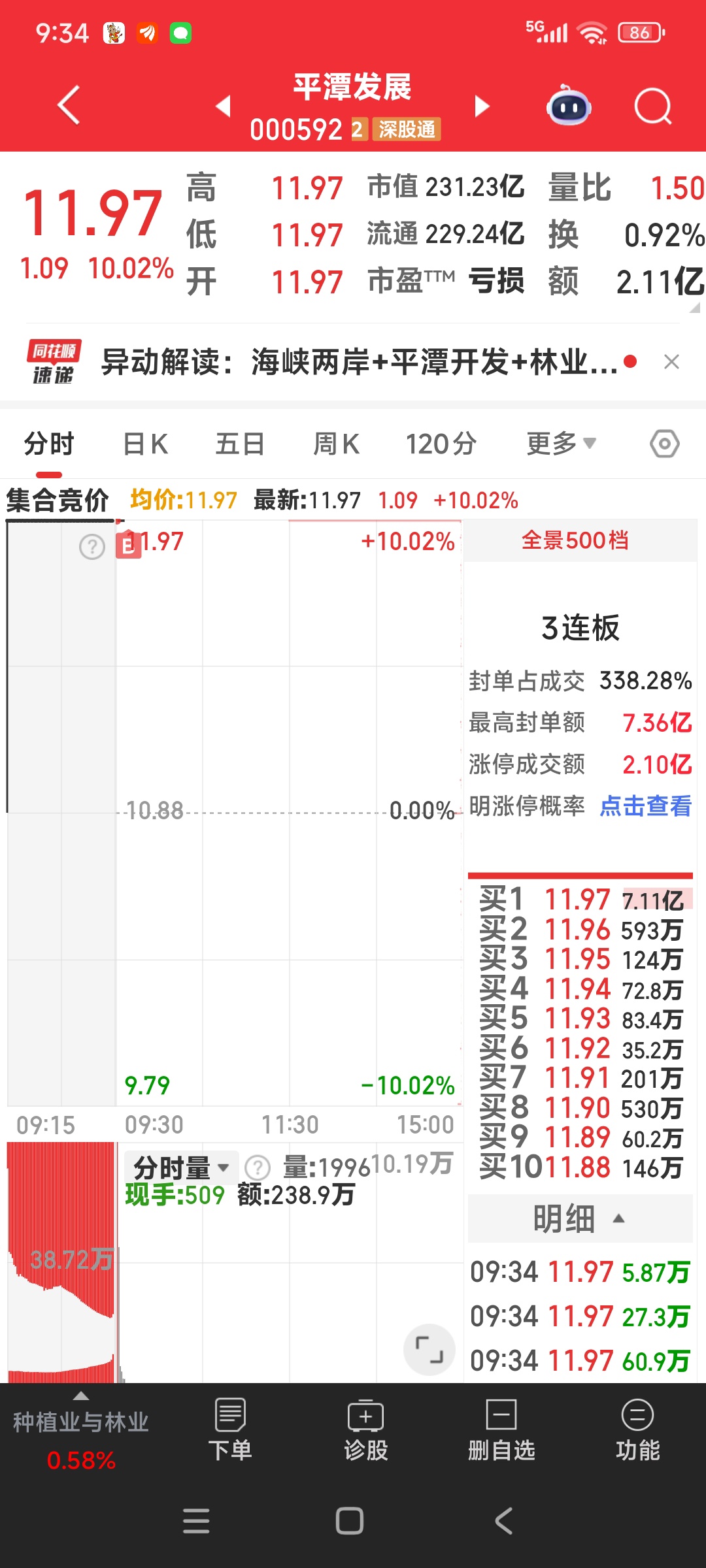 $龙洲股份(SZ002682)$ 龙洲隔夜单未撤,双节点加补涨助攻龙!继续加仓总龙头$平潭发展(SZ000592)$ !