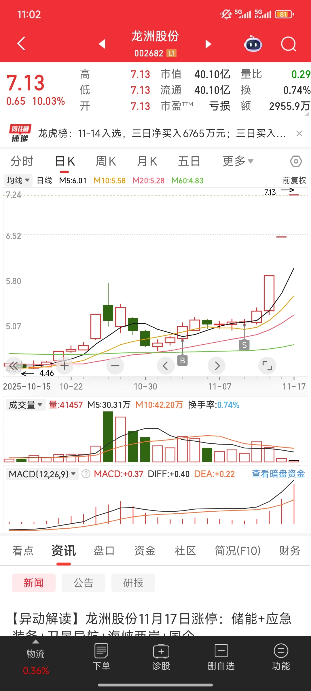 $龙洲股份(SZ002682)$ 有点运气但不多