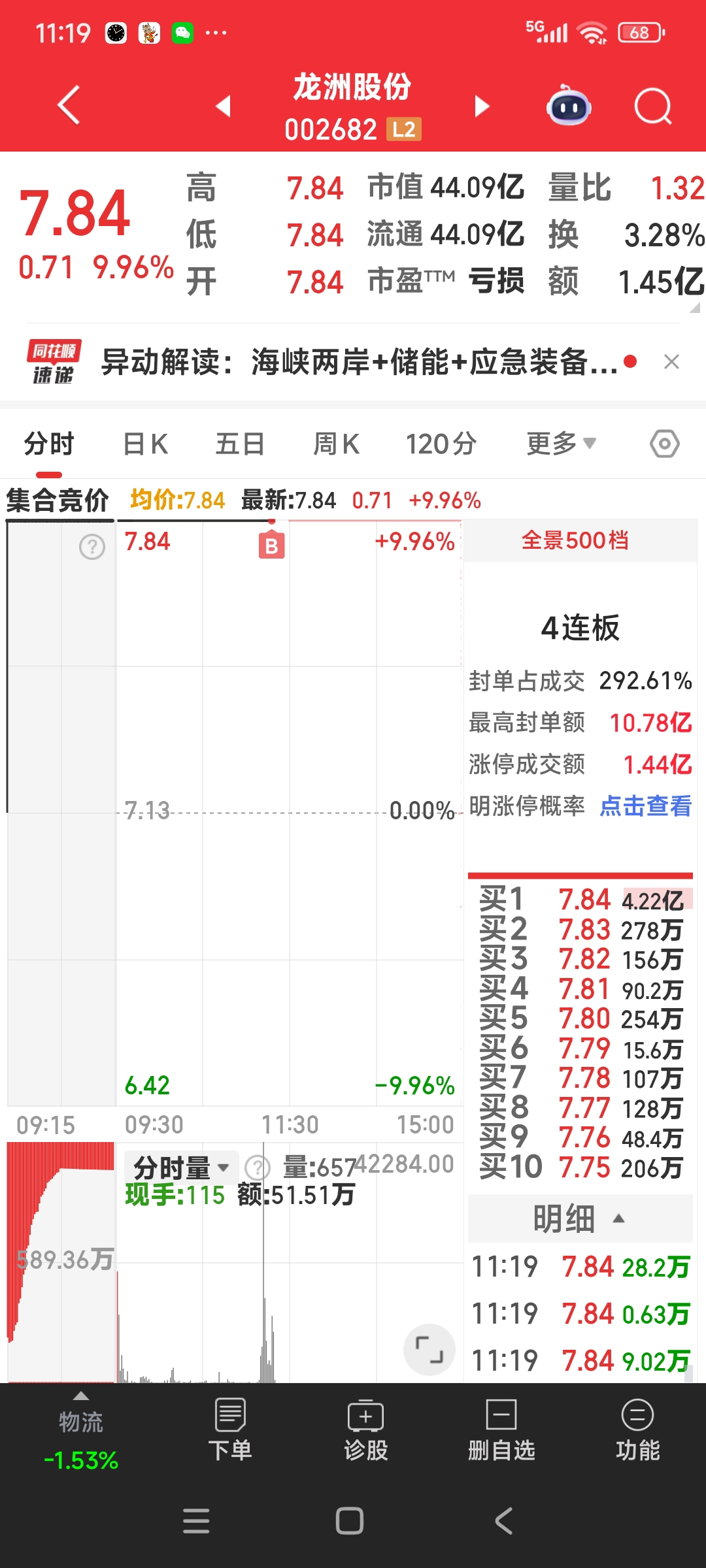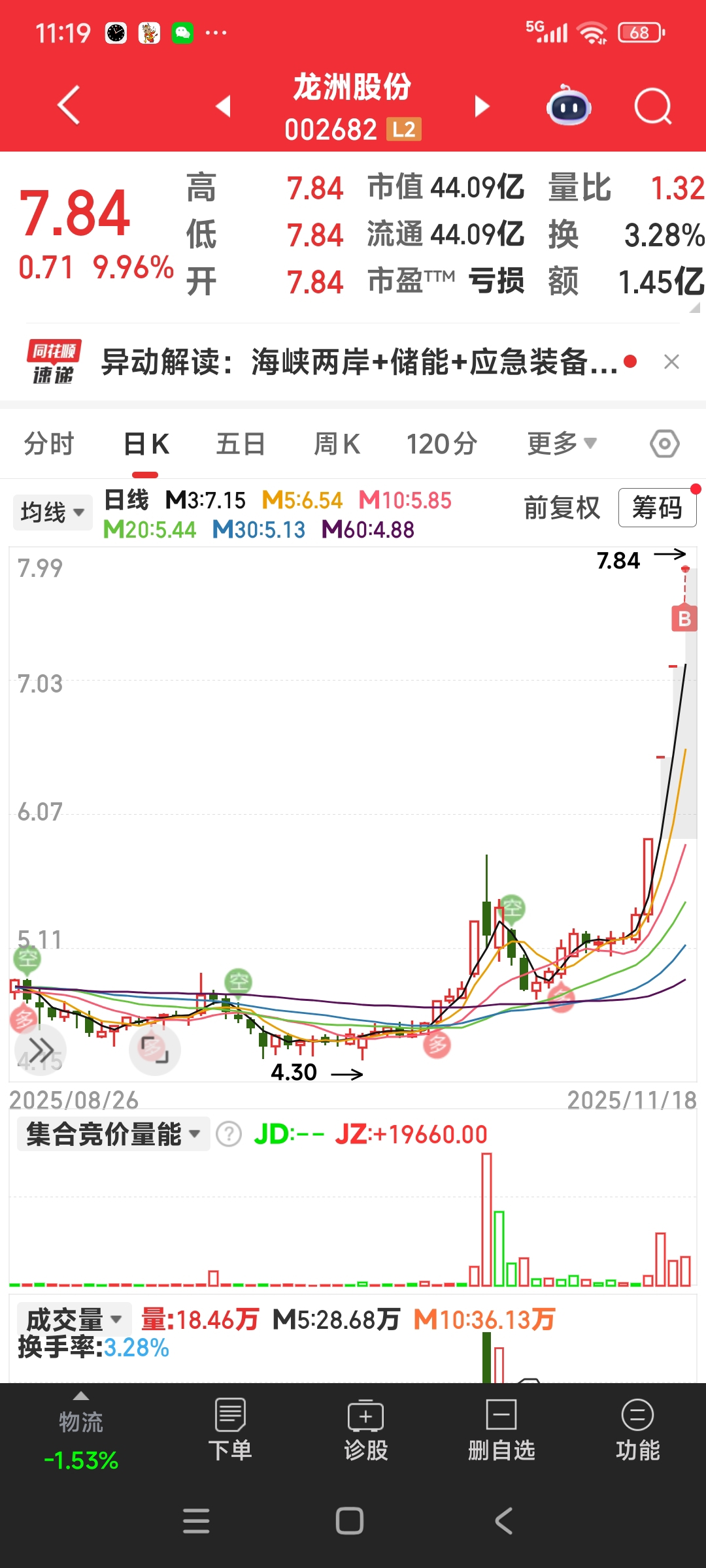 买入龙洲股份,仓位一步到位,后续不再加仓!持有到断板走人!