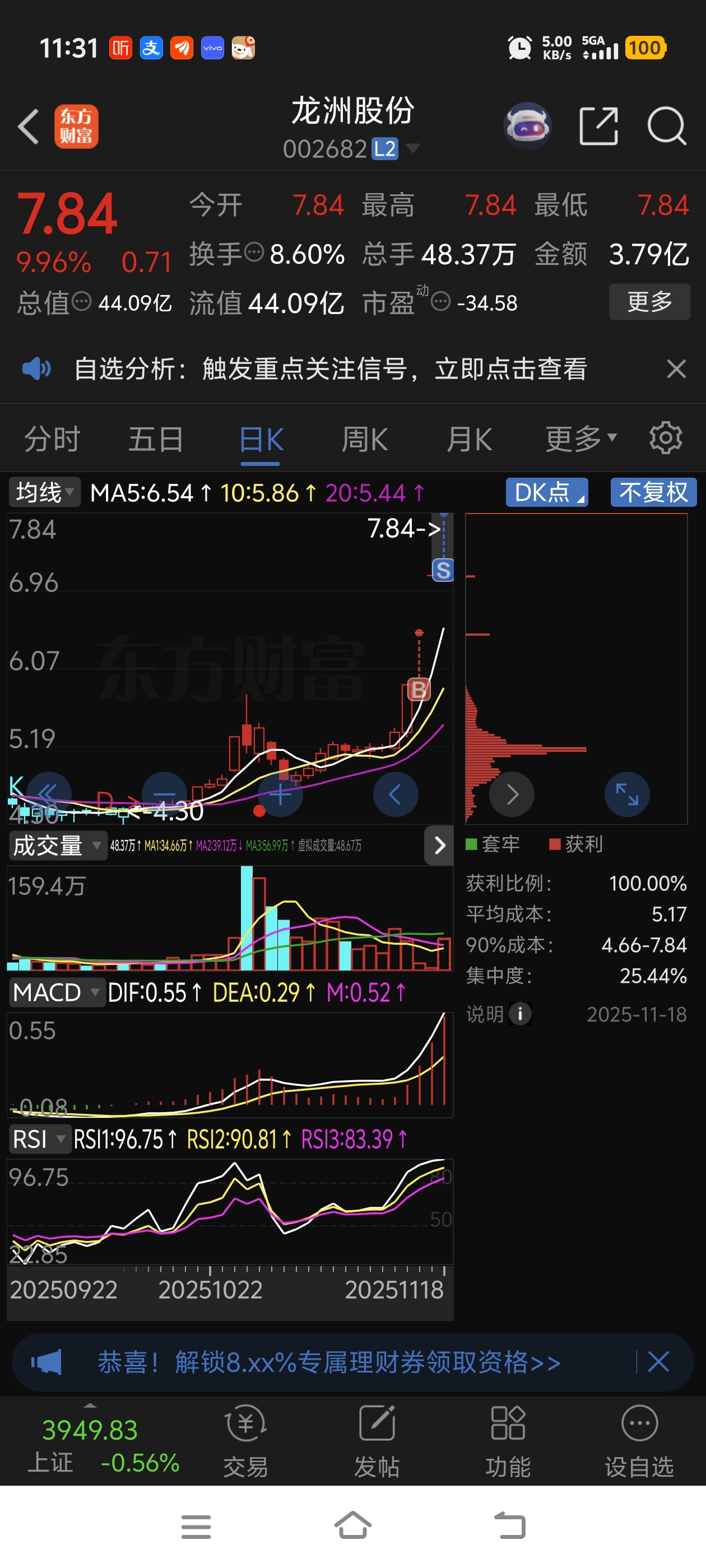 $龙洲股份(SZ002682)$ 吓跑路了,刚刚底部筹码动了