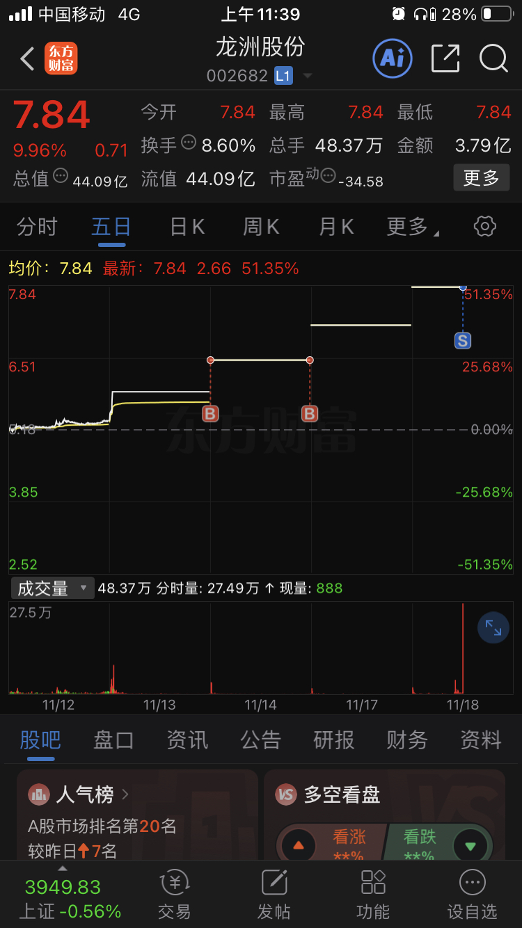 $龙洲股份(SZ002682)$ 走了,受不了
