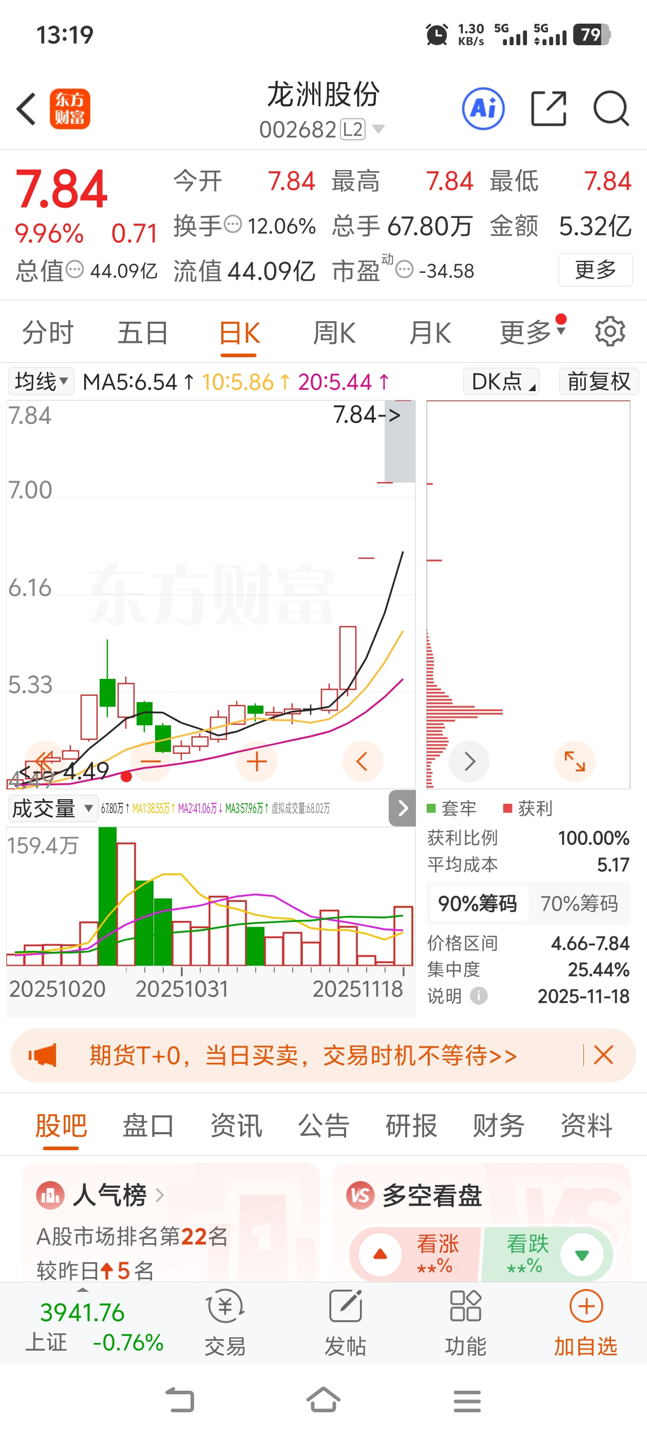 $龙洲股份(SZ002682)$ 底部筹码都跑了,明天谁来拉。