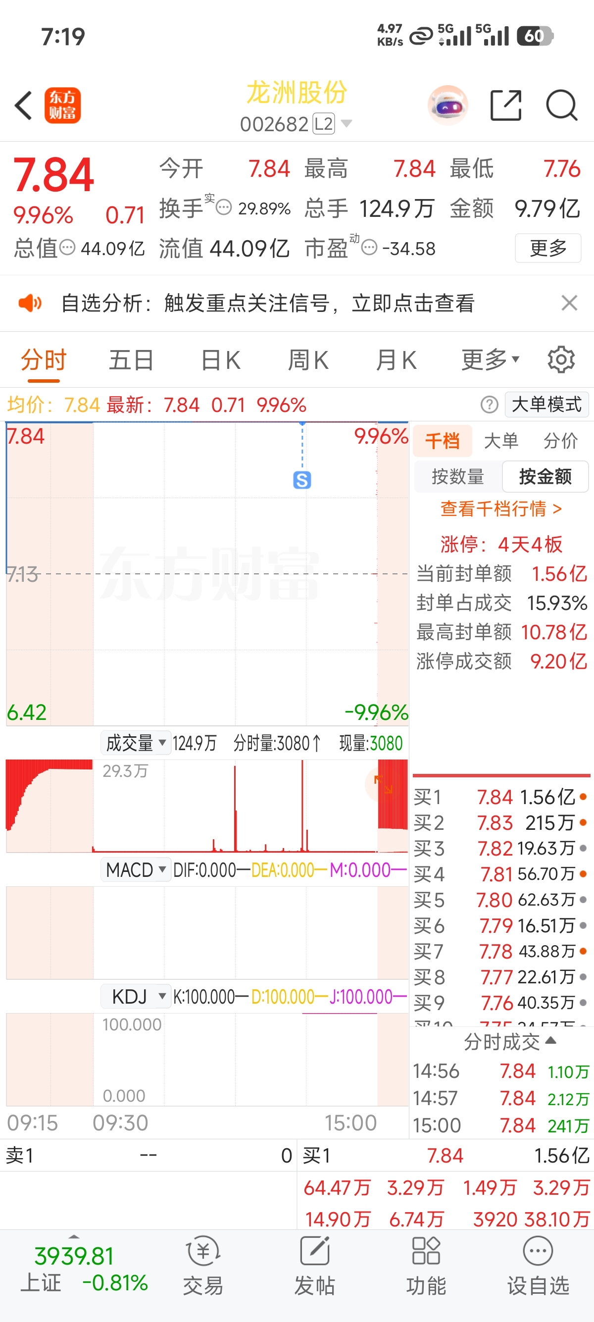 $龙洲股份(SZ002682)$ 条件单洗出去了,踏空比空仓难受