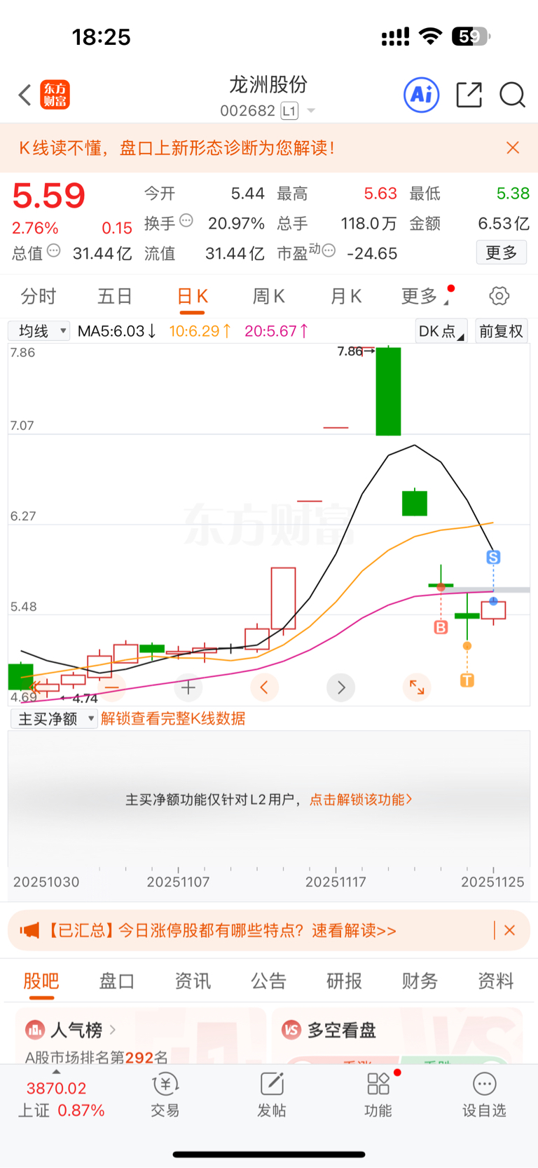 $龙洲股份(SZ002682)$ 赚了6个点,走了,不跟他耗了