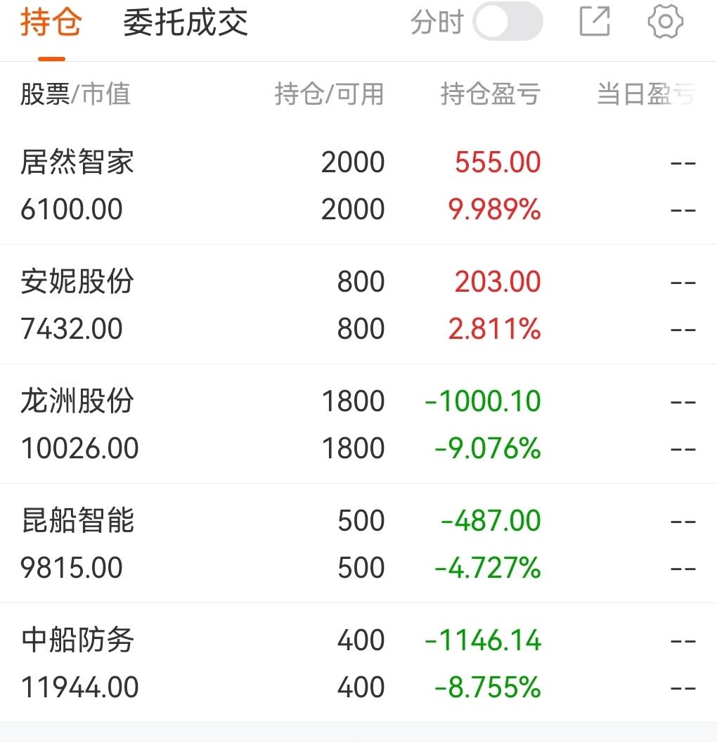 午饭过后,下午一点半左右。我看见股价跌不动了正在横盘。于是我又把前面卖出的半仓又接了回来。完美的做了一波反T。又获利几十块,距离解套又近了一小步!
