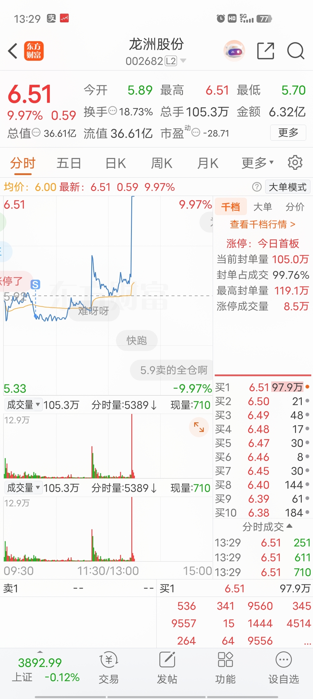 $龙洲股份(SZ002682)$ 大哥你是认真的吗,什么意思,最低点割肉的