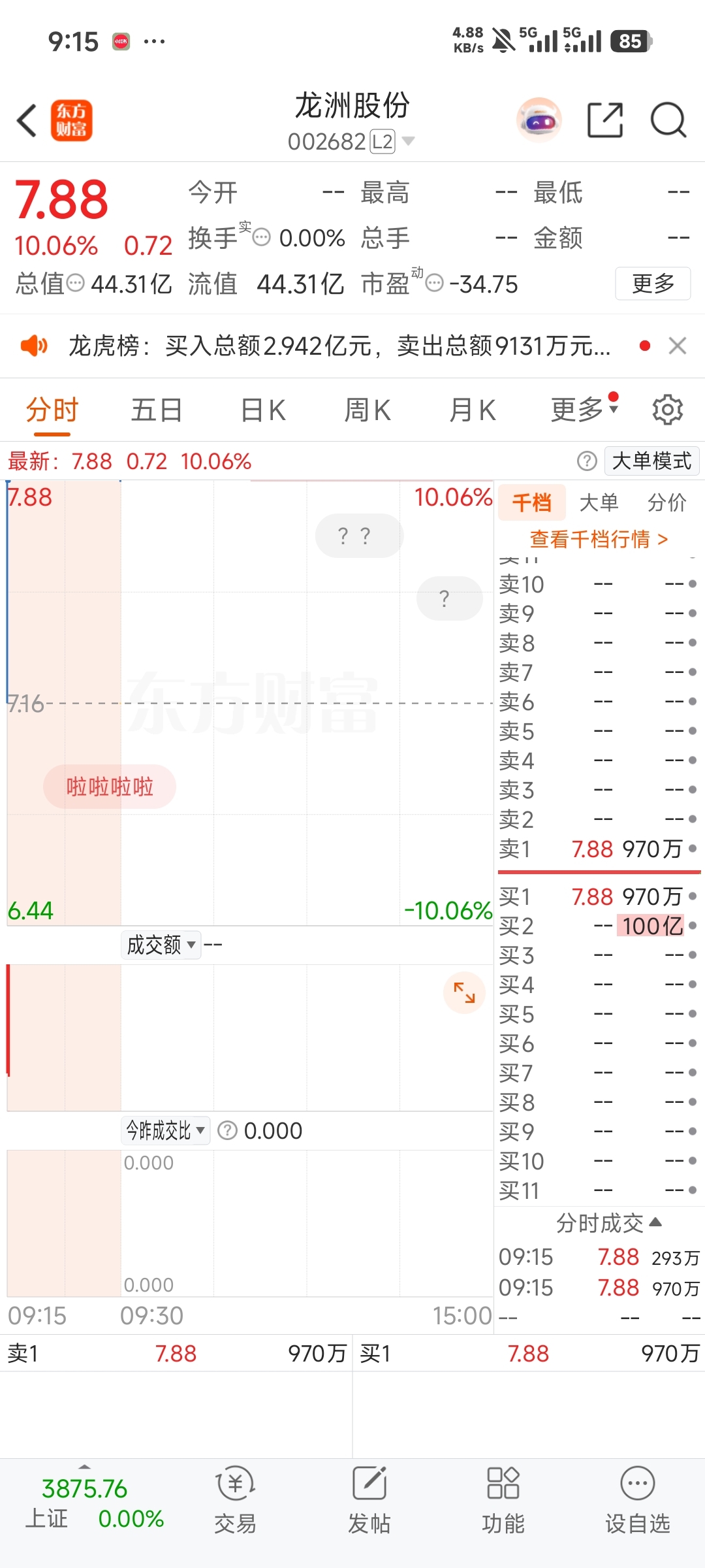 $龙洲股份(SZ002682)$ 疯了?百亿封单???