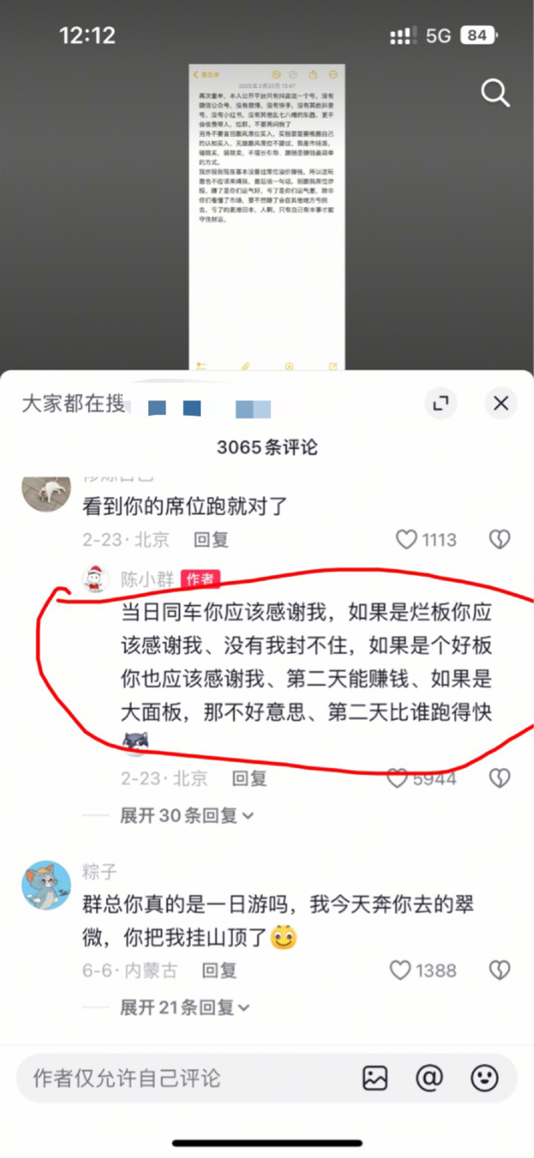 当日同车你应该感谢我,如果是烂板你应该感谢我、没有我封不住,如果是个好板你也应该