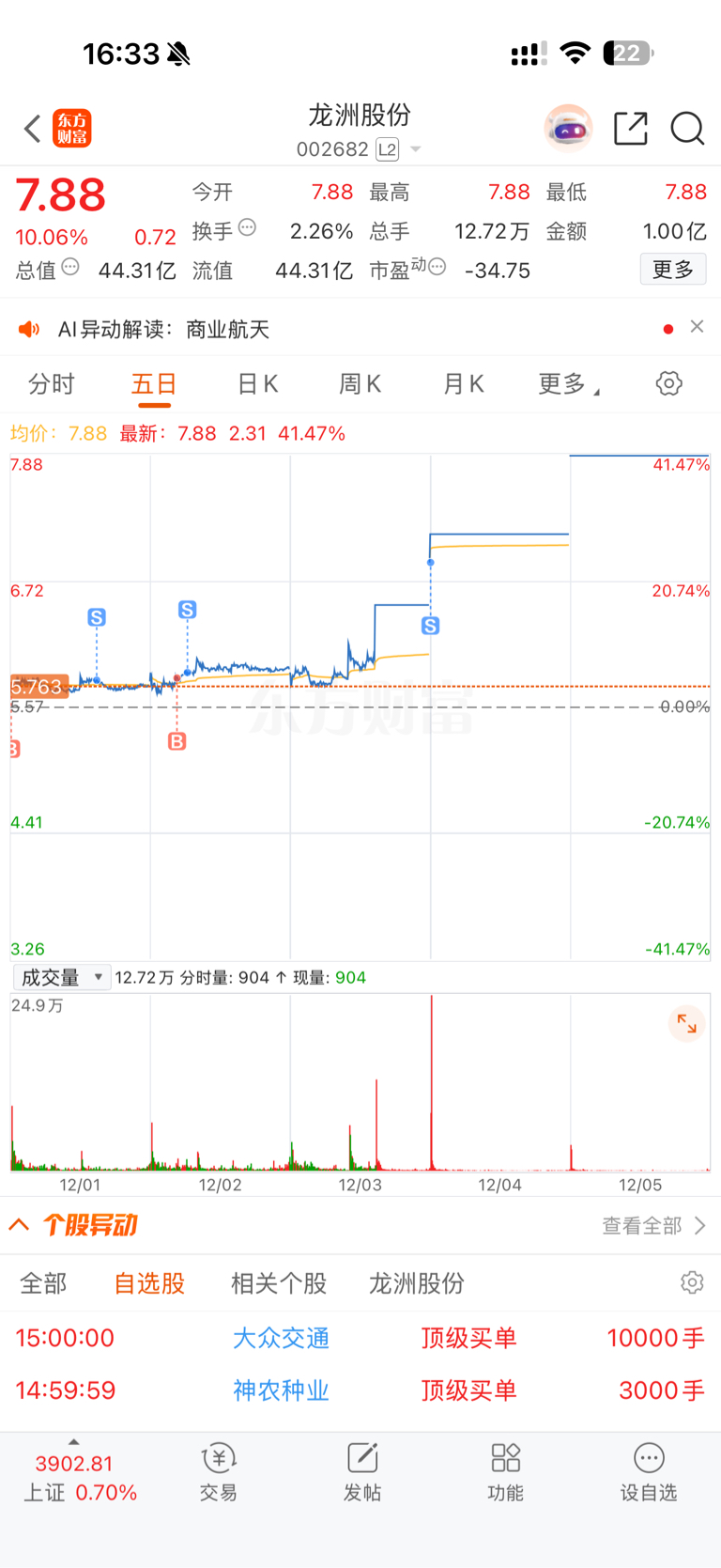 $龙洲股份(SZ002682)$ 舒服 每天开盘就大几k保底 舒服嘛了 下周还有4567个板 哈哈