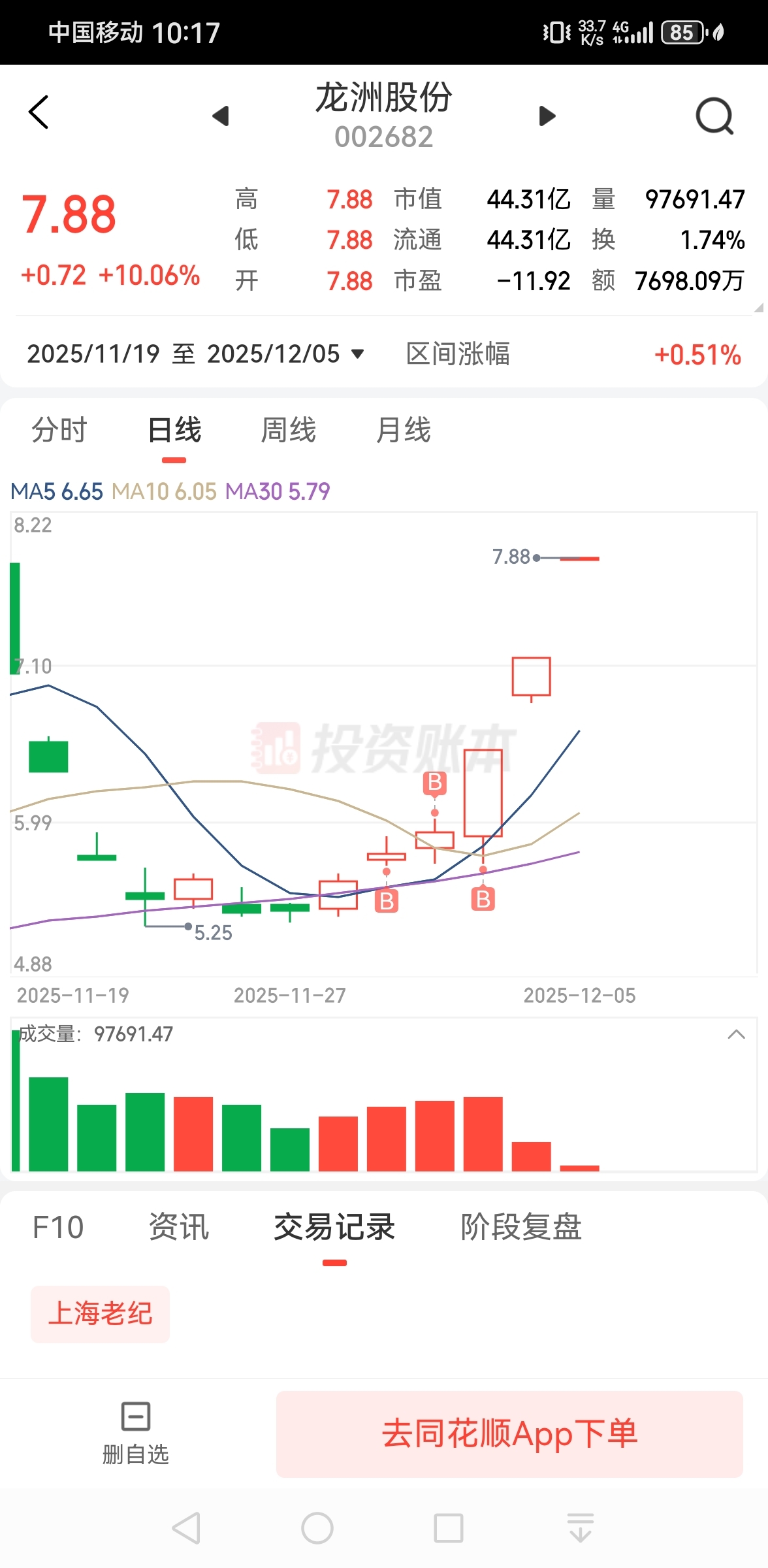 $龙洲股份(SZ002682)$ 这次上车时机还可以,风来了猪起飞
