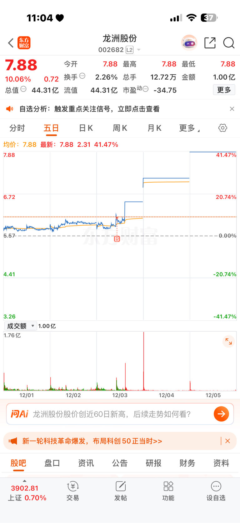 $龙洲股份(SZ002682)$ 这个操作怎么样#复盘记录#