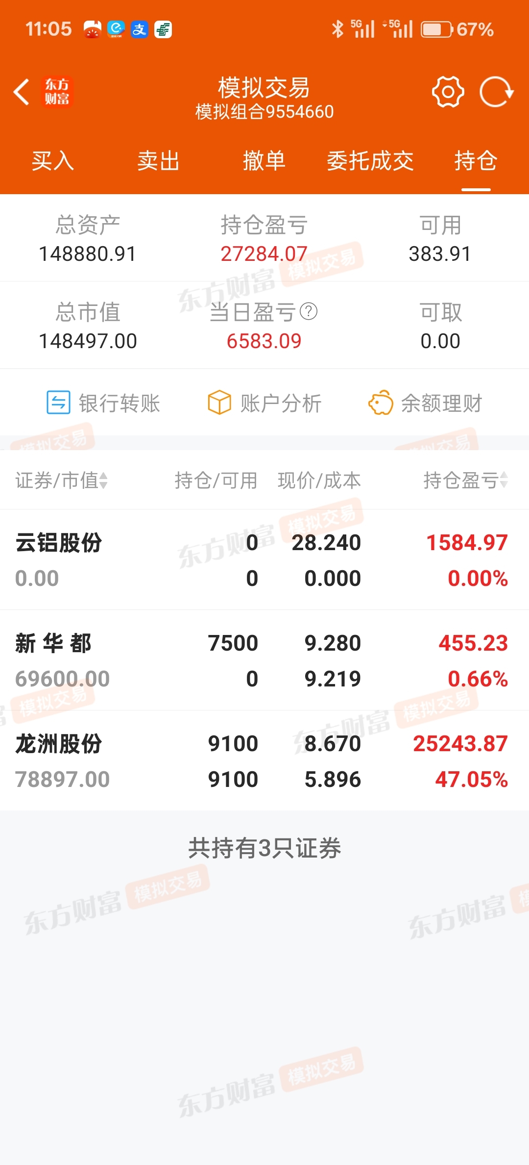 $龙洲股份(SZ002682)$ 被气笑了,那天实盘还在考虑,就用模拟盘先买了五成仓,后面发现实盘上不了车了