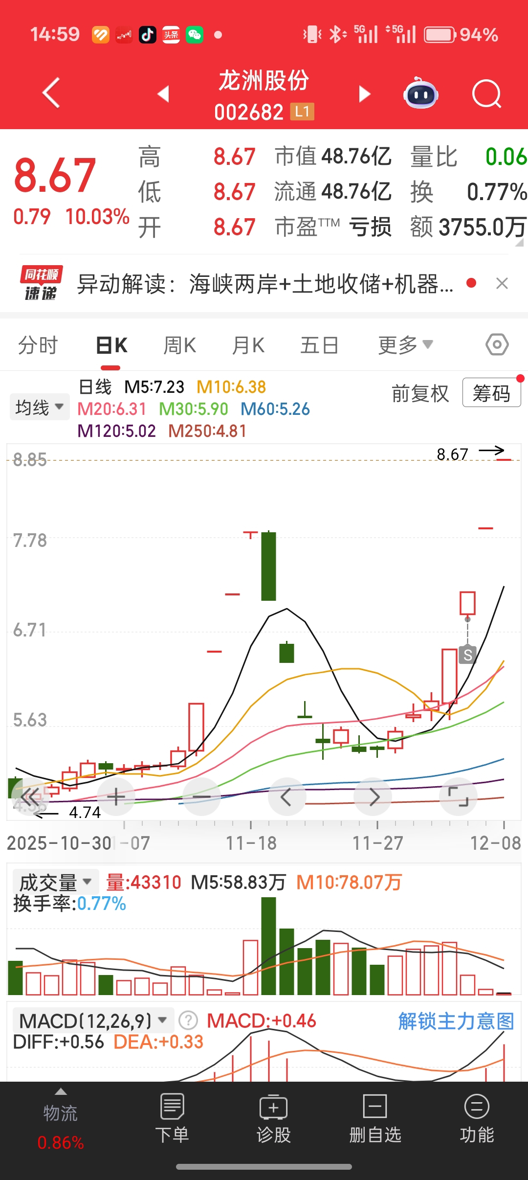 $龙洲股份(SZ002682)$ 哭晕在厕所。
