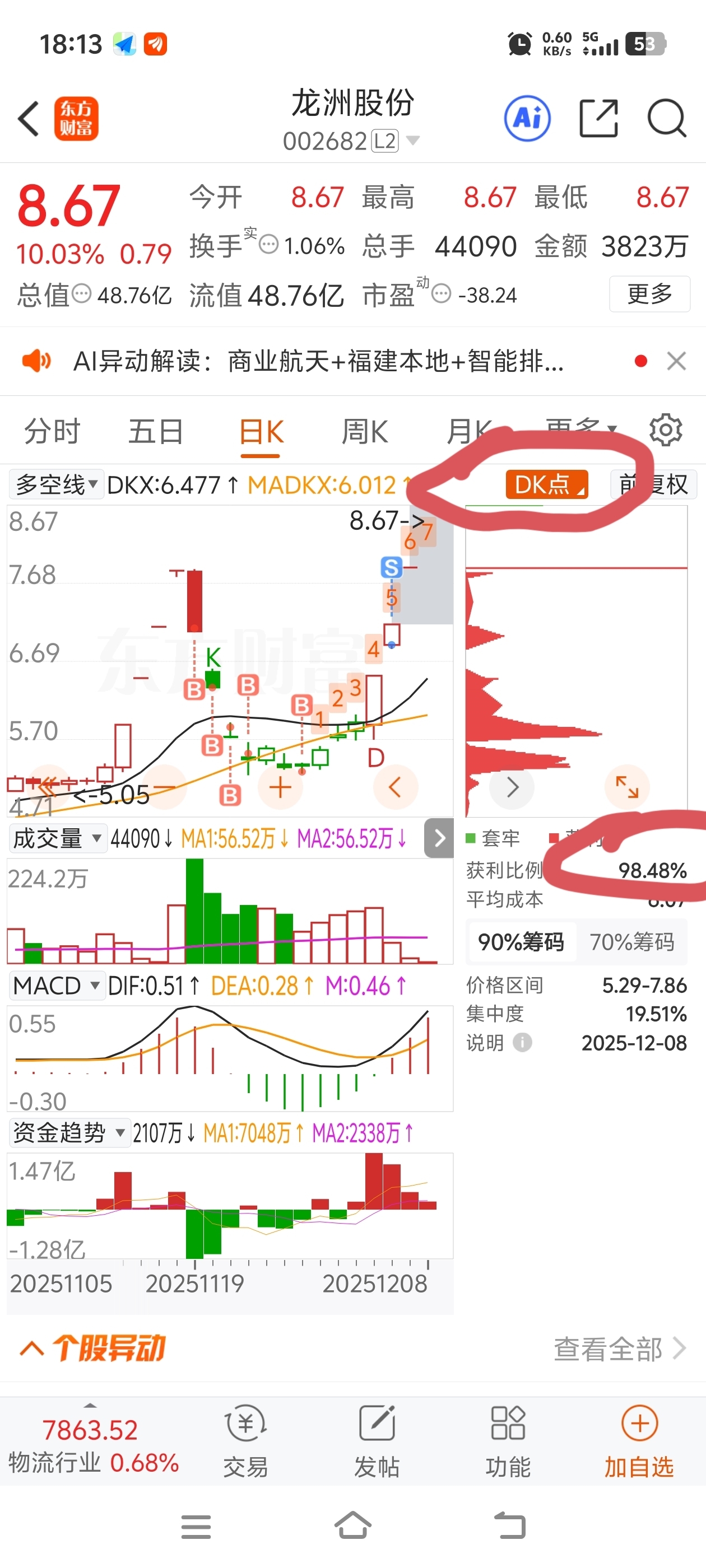 居然还有一些钉子户套到现在,还有1.52%的筹码亏钱