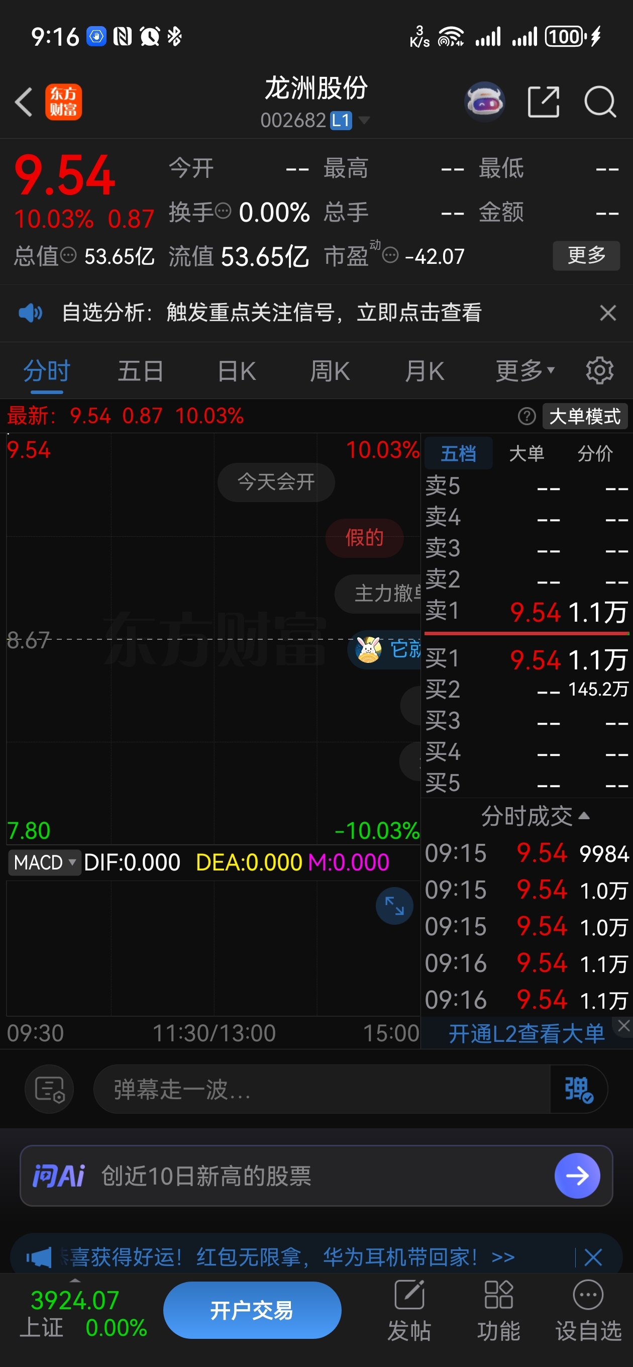 $龙洲股份(SZ002682)$ 大家真的很齐心!每天一百多万封单,主力大哥牛逼,你不卖我不卖,天天涨停!