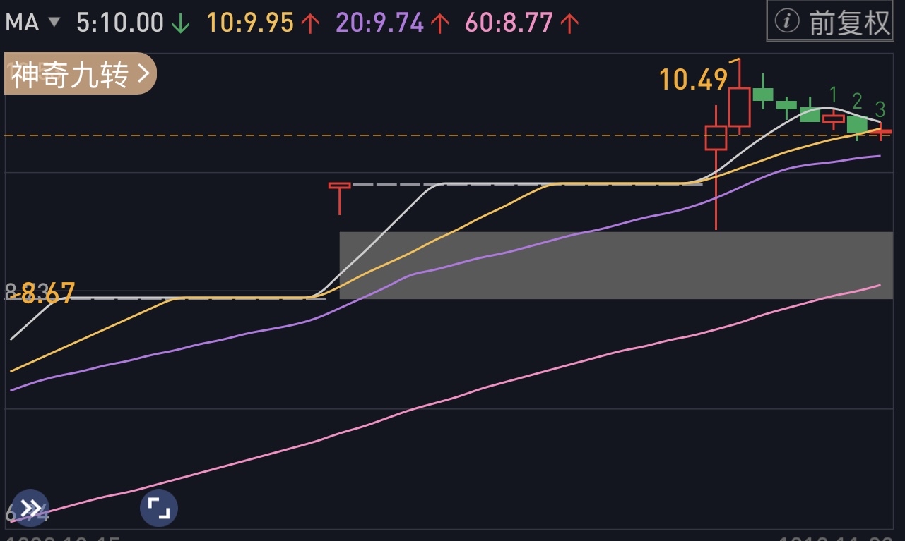 这个点位就是分歧点上到10.05以上就一飞冲天反之有效跌破这个点今天就没戏明天的
