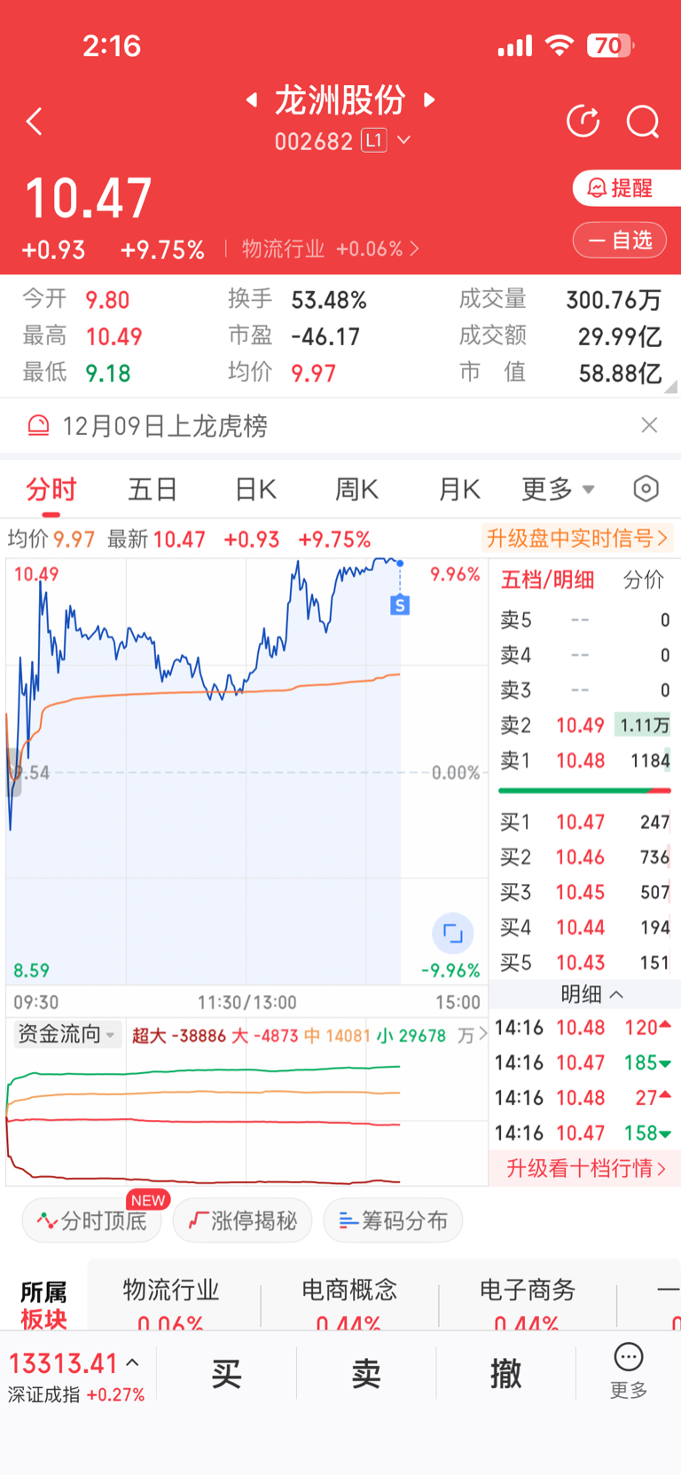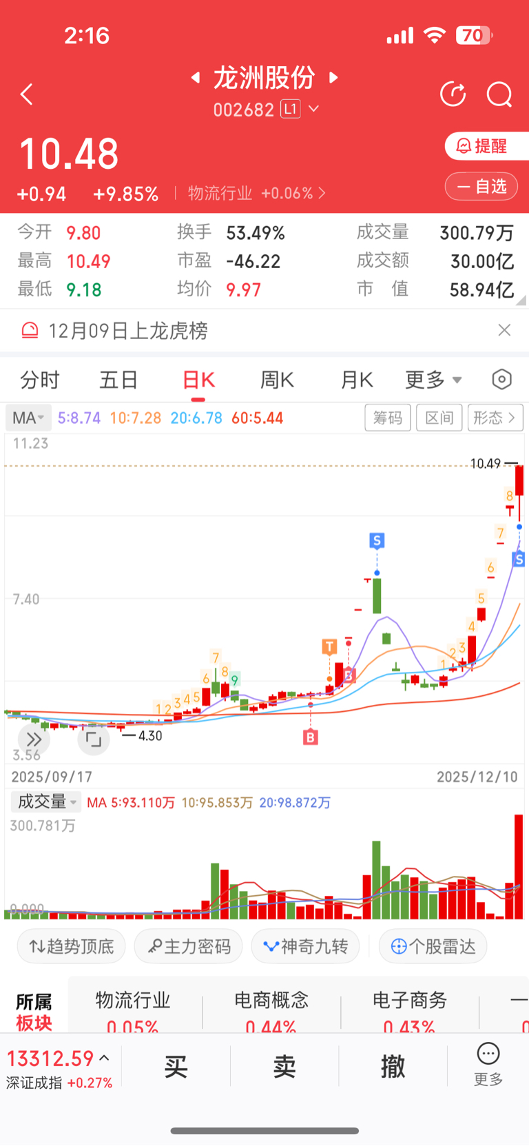 $龙洲股份(SZ002682)$ 超量换手,可能封不住,全部出完,留下的发财!