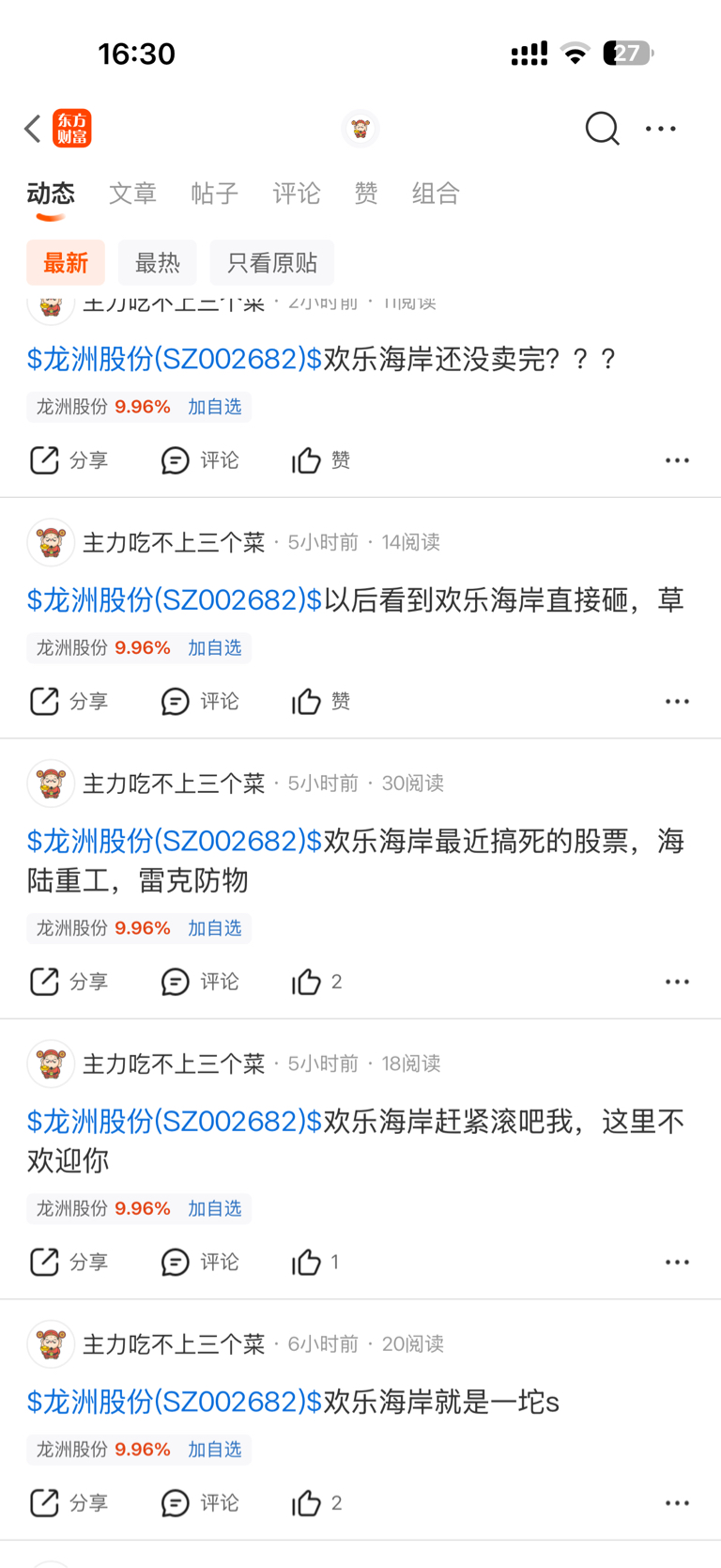 $龙洲股份(SZ002682)$ 没有出榜我就知道欢乐海岸这狗卖了