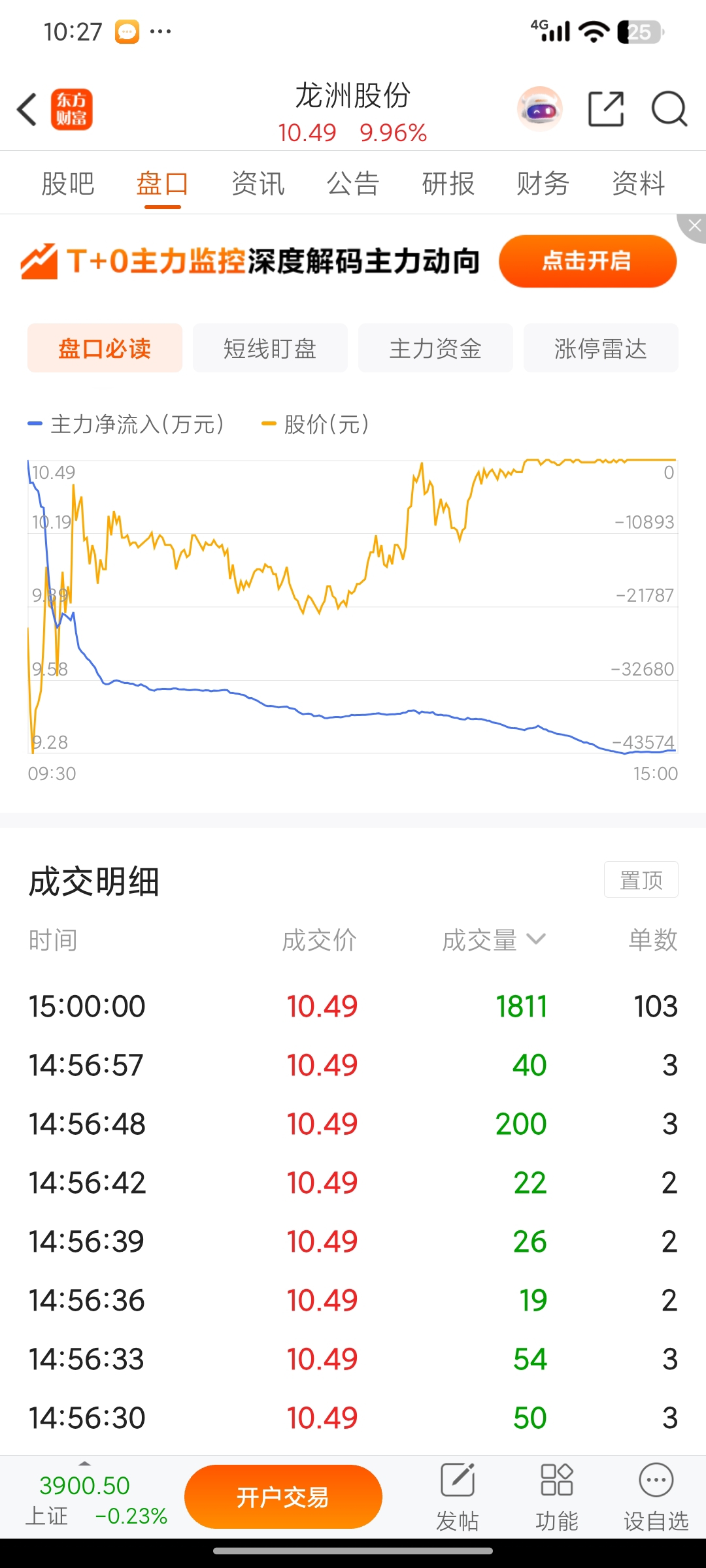 $龙洲股份(SZ002682)$ 第一次看到这种封板的,活久见,尾盘资金动都没动把板封住了。后面真的没人卖吗?是格局还是卖完了