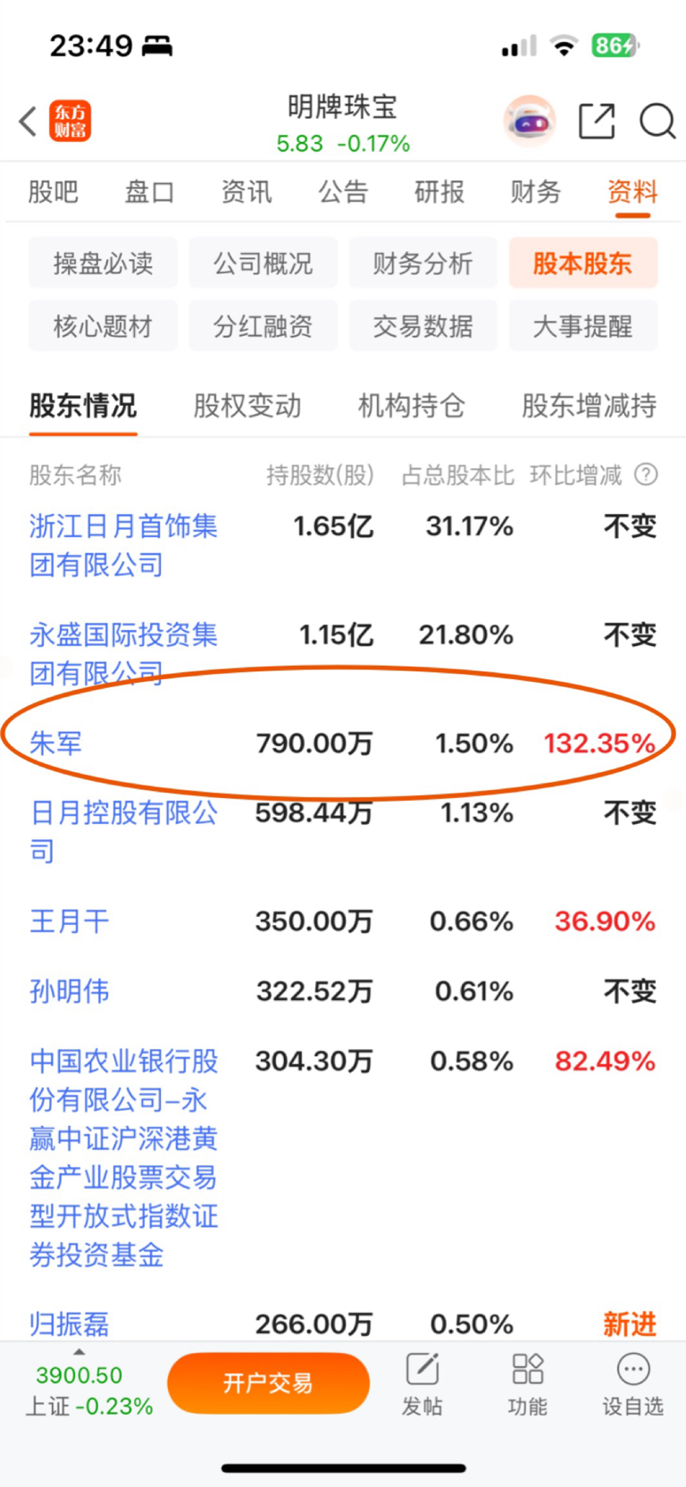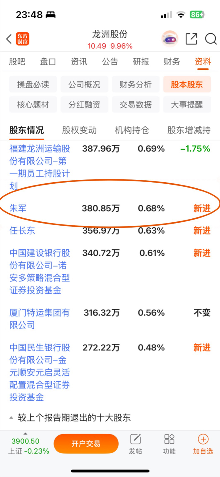 龙洲股份、名牌珠宝流通股第一大自然人都是朱军,横有多长竖有多好!紧跟龙洲,明牌珠