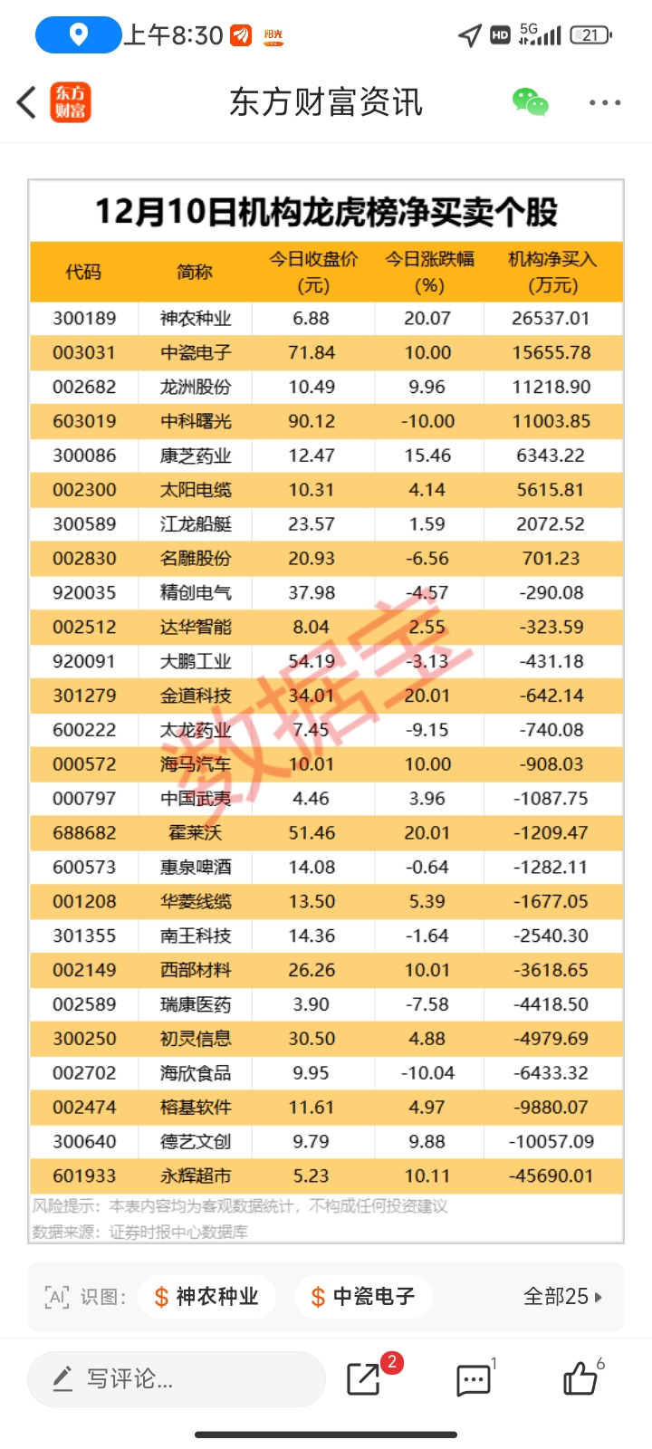 $龙洲股份(SZ002682)$ 机构疯狂扫货龙州大帝一个多亿,龙州必将成为跨年龙