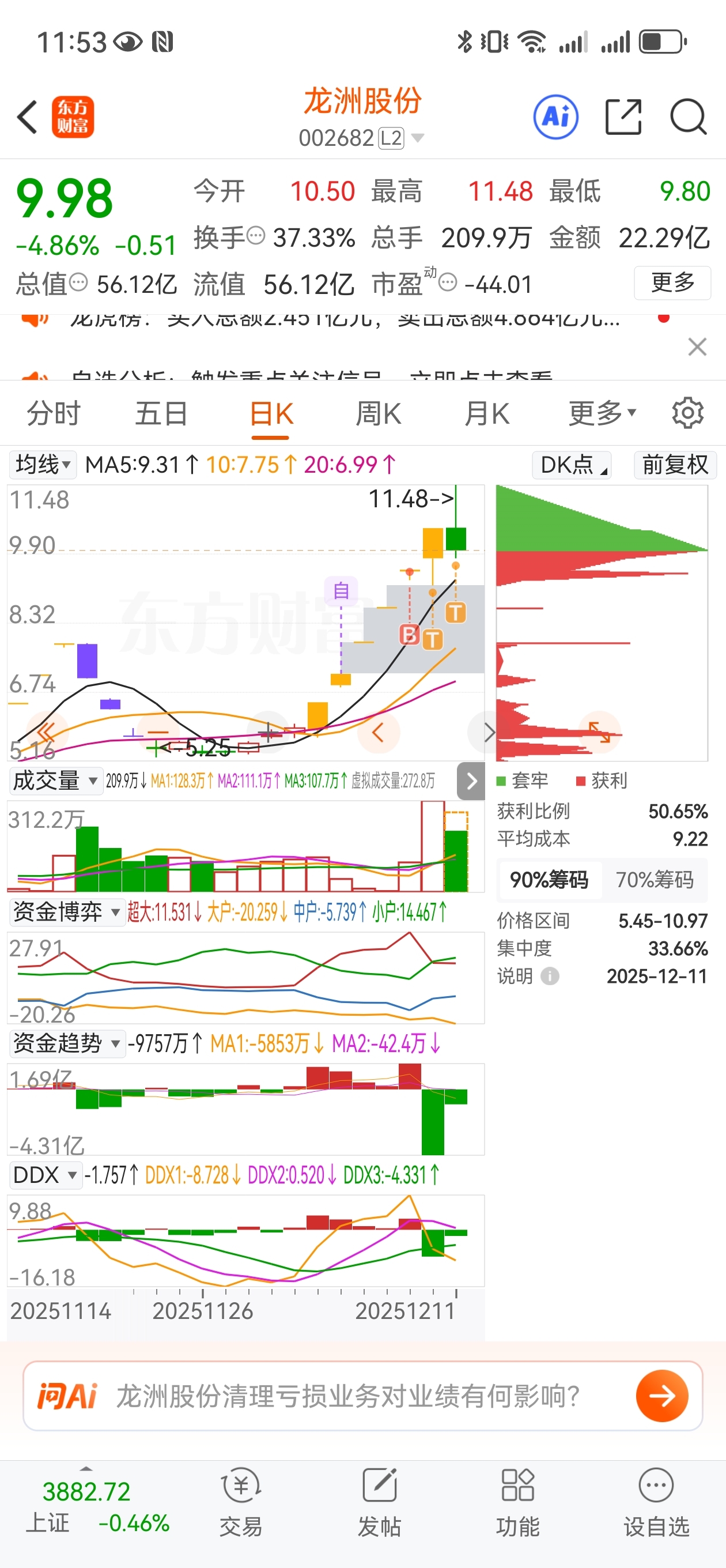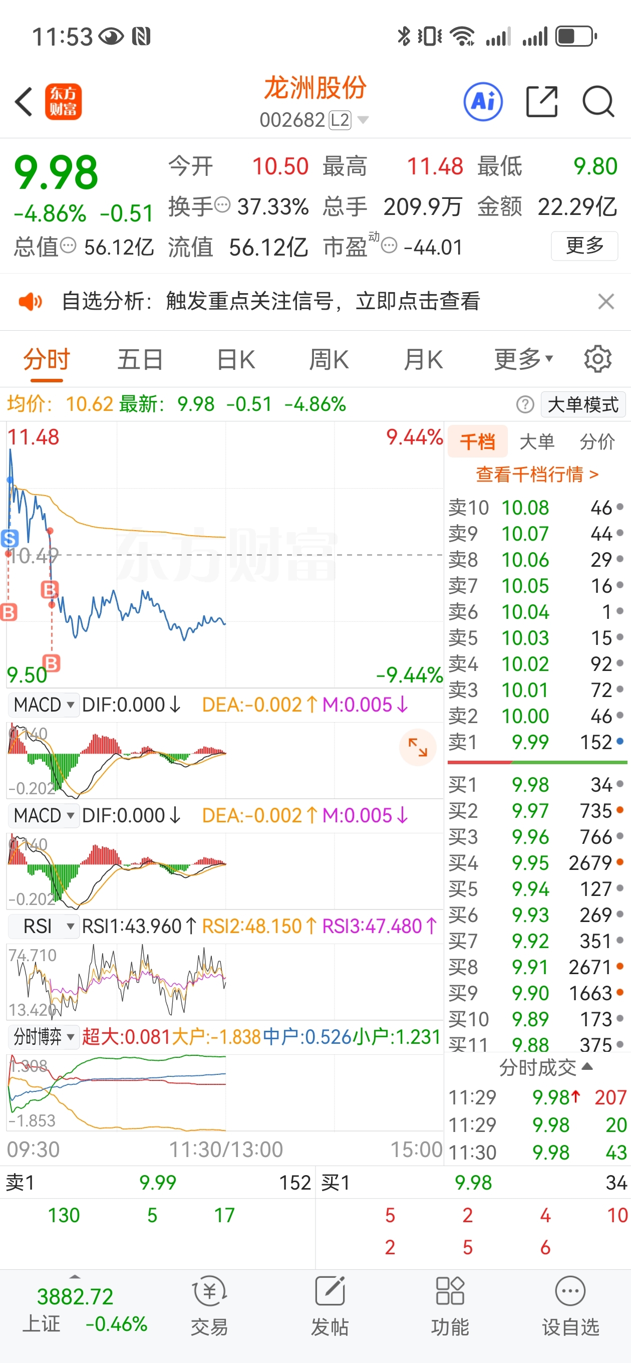 $龙洲股份(SZ002682)$ 竞价超预期,开盘五分钟承接也很强,早盘量能符合预期,昨日9.8开盘价稳如泰山,今天唯一败笔就是短线情绪波动较大,东百继续强势更有辨识度,卡位可能较大,看午盘修复怎么样吧