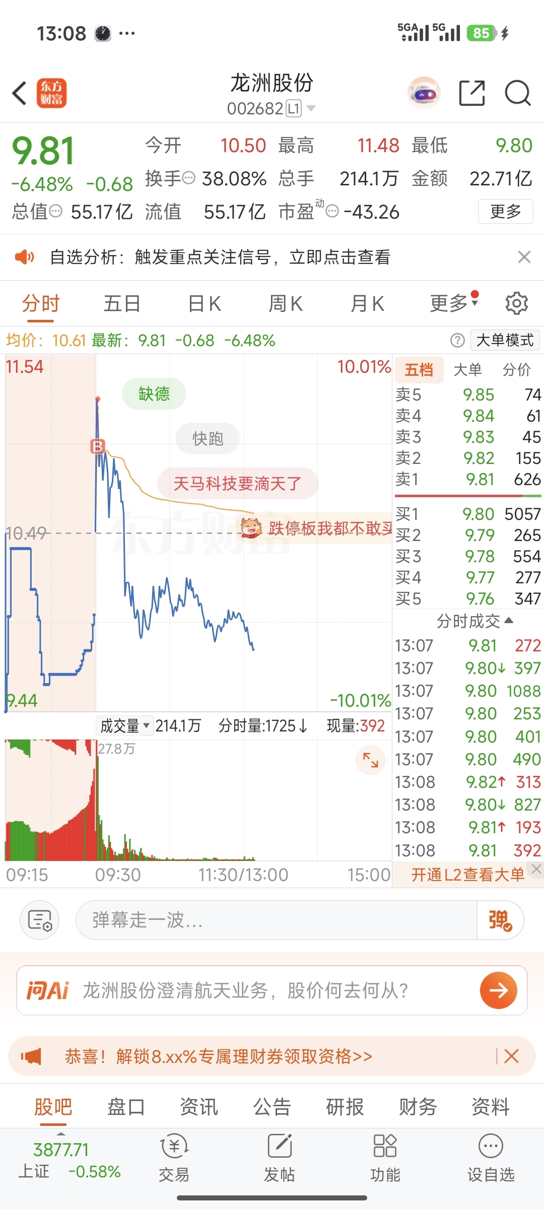 $龙洲股份(SZ002682)$ 韭菜在这里