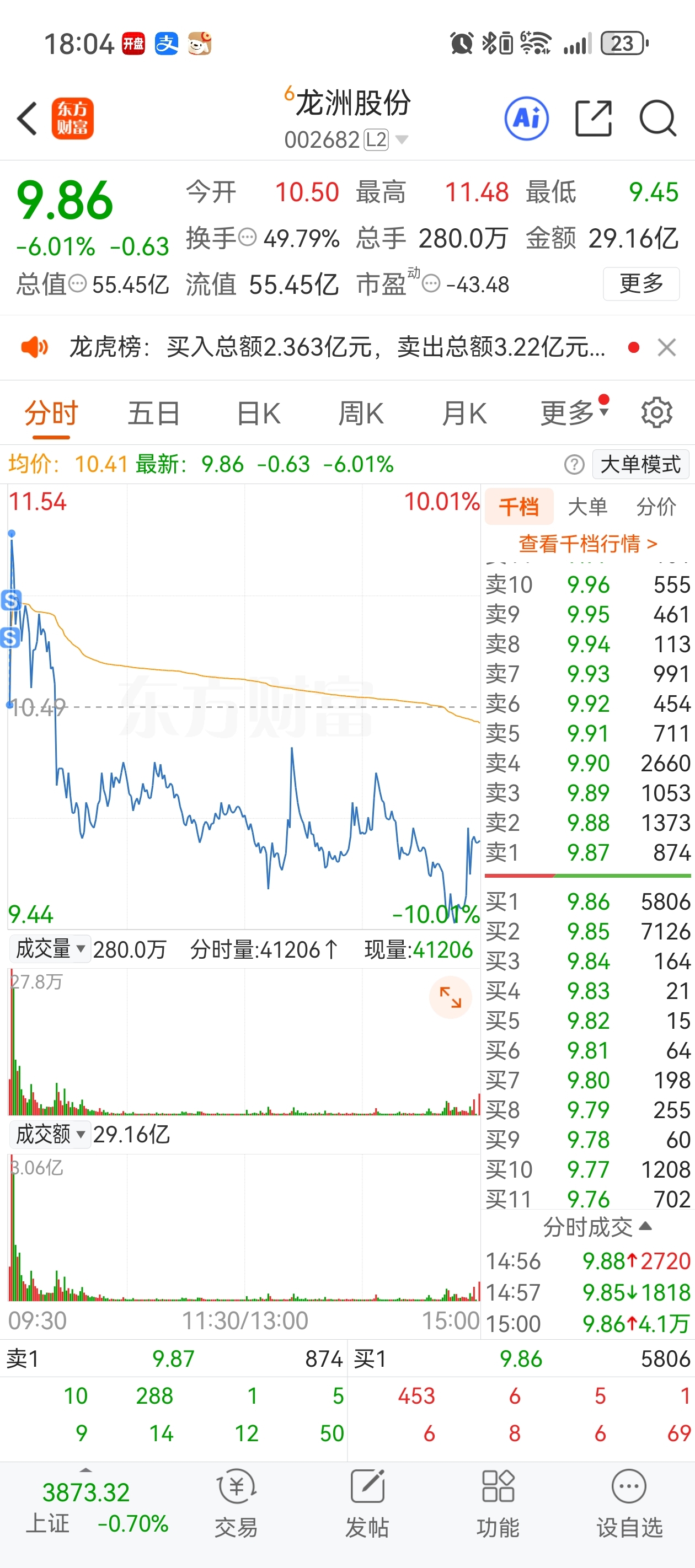 $龙洲股份(SZ002682)$ 群总没走,格局太大,明天龙头首阴反包,或者走趋势。我一直看着它,尾盘没仓位了,否则会买回来的。