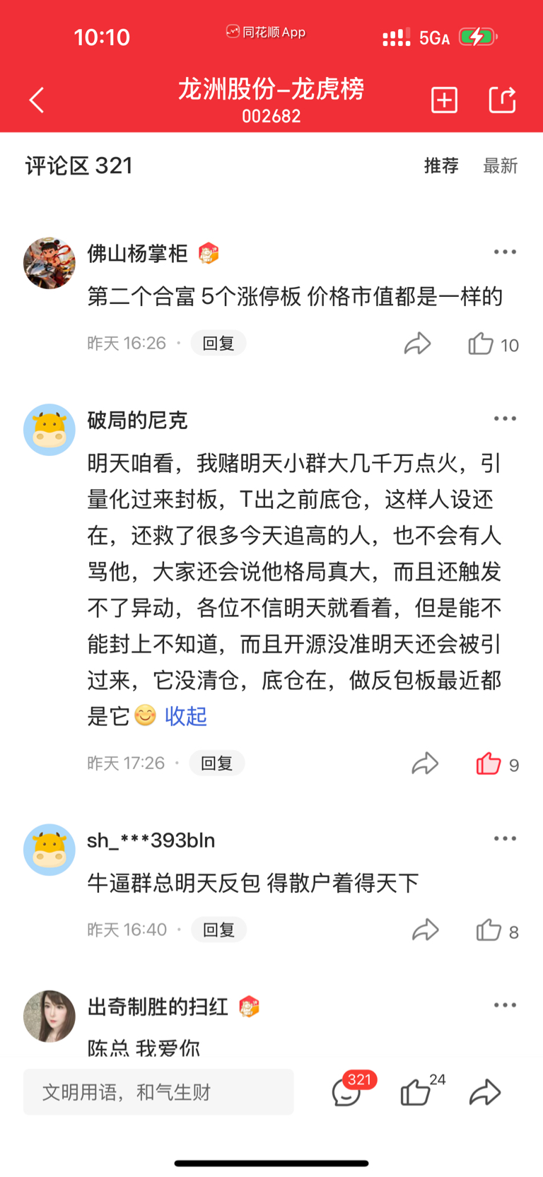 $龙洲股份(SZ002682)$ 昨天说了小群会拉龙州把之前的货T出来,能不能板未必板上没出的,看看我今天早上发的